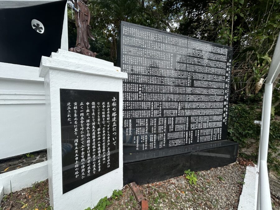 波上宮鳥居的右手邊,小山坡走上去有許多的紀念碑。其中一個稱為『小櫻之塔』,用來紀念沖繩戰役備戰期間,因美軍潛艇攻擊沈沒葬身海洋一千多位來不及長大的小學生。
