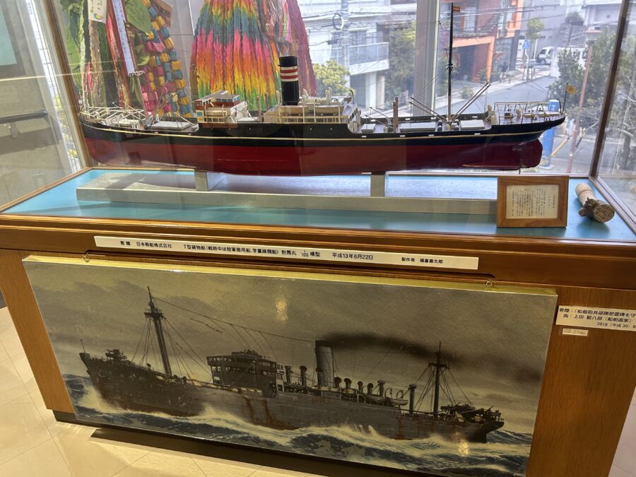 繼續前行拾級而下,有個記錄這段故事的『對馬丸紀念館』。對馬丸,是負責疏散沖繩百姓任務的貨船。在1944年8月載運一千多個小學生躲避戰火前往九洲的路上,於薩南群島海域,被美軍艦艇擊沈。