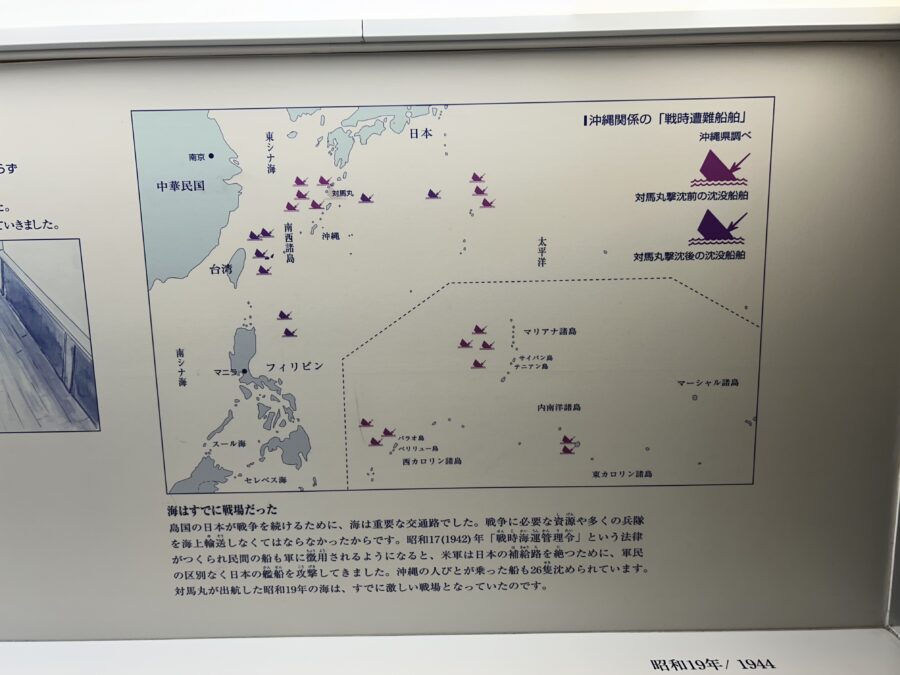 在1944年塞班島戰役結束後,美日雙方都開始在為沖繩戰役進行預備。1944年8月開始,美軍開始攻擊在沖繩海域往返的船隻,進行海域封鎖;沖繩則針對10萬名不具戰鬥力的老人和小孩,往日本本土(8萬)、台灣(2萬)疏散 ▶︎ 1944年10月那霸大轟炸 ▶︎ 1945年4月沖繩登陸戰開始 ▶︎ 1945年6月沖繩戰役結束