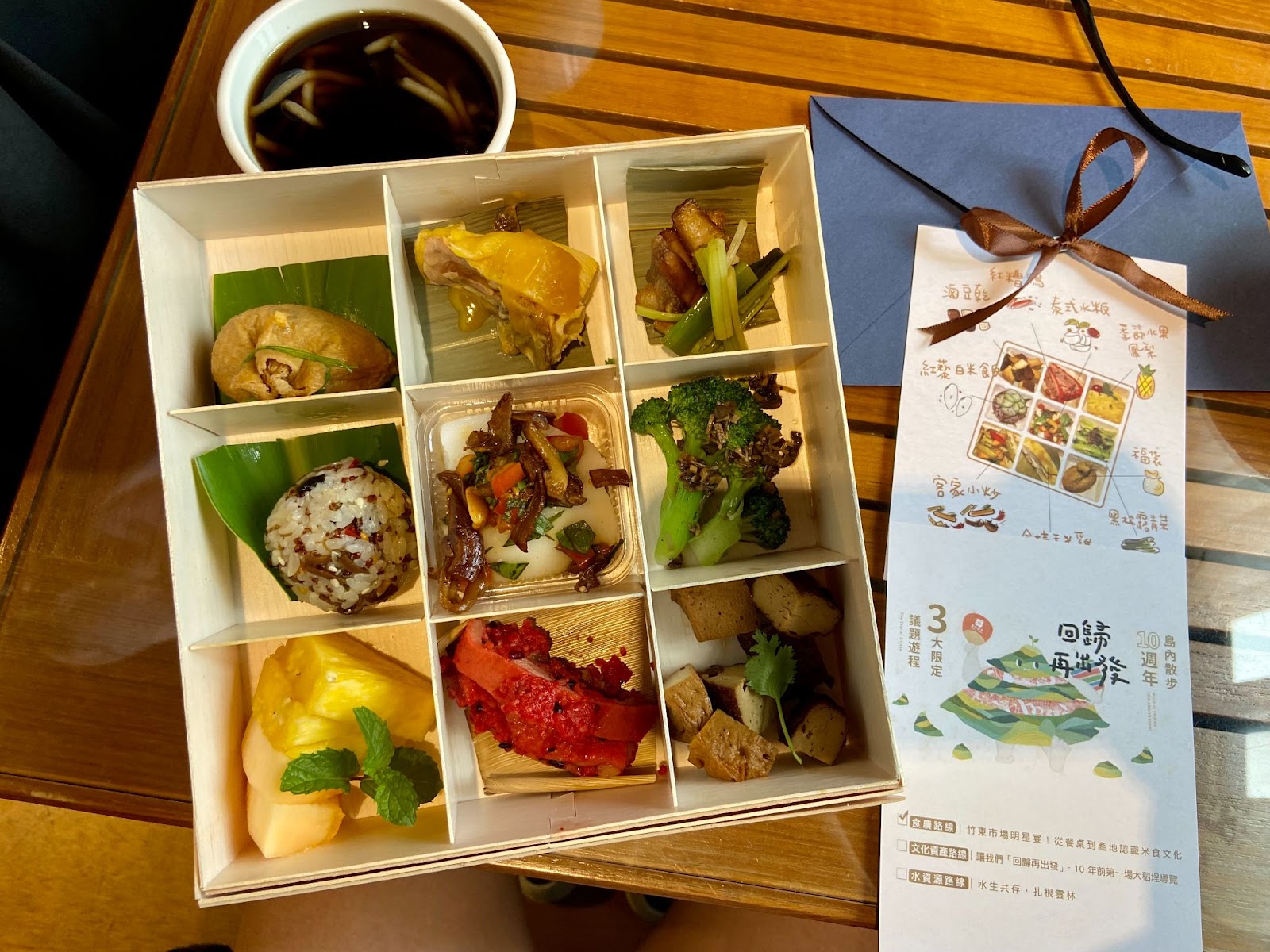 市場美食環繞,無論你有選擇障礙,或苦無一地坐下大快朵頤,島內散步為旅人把竹東市場明星菜色一網打盡,邀請地方料理達人將傳統米食、在地食材結合現代口味設計「風土餐盒」,並來到空間背景繪上竹東市場的在地咖啡館「東風喃喃」,讓民眾邊享用餐點邊聽主廚說菜,從味覺開啟認識食物的文化脈絡。一旁餐盒旁更附上「稻米小知識」及食材解說,不僅好吃,更引導消費者有意識地選擇對在地好的方式吃,來一趟傳統米食新潮味的餐桌之旅!