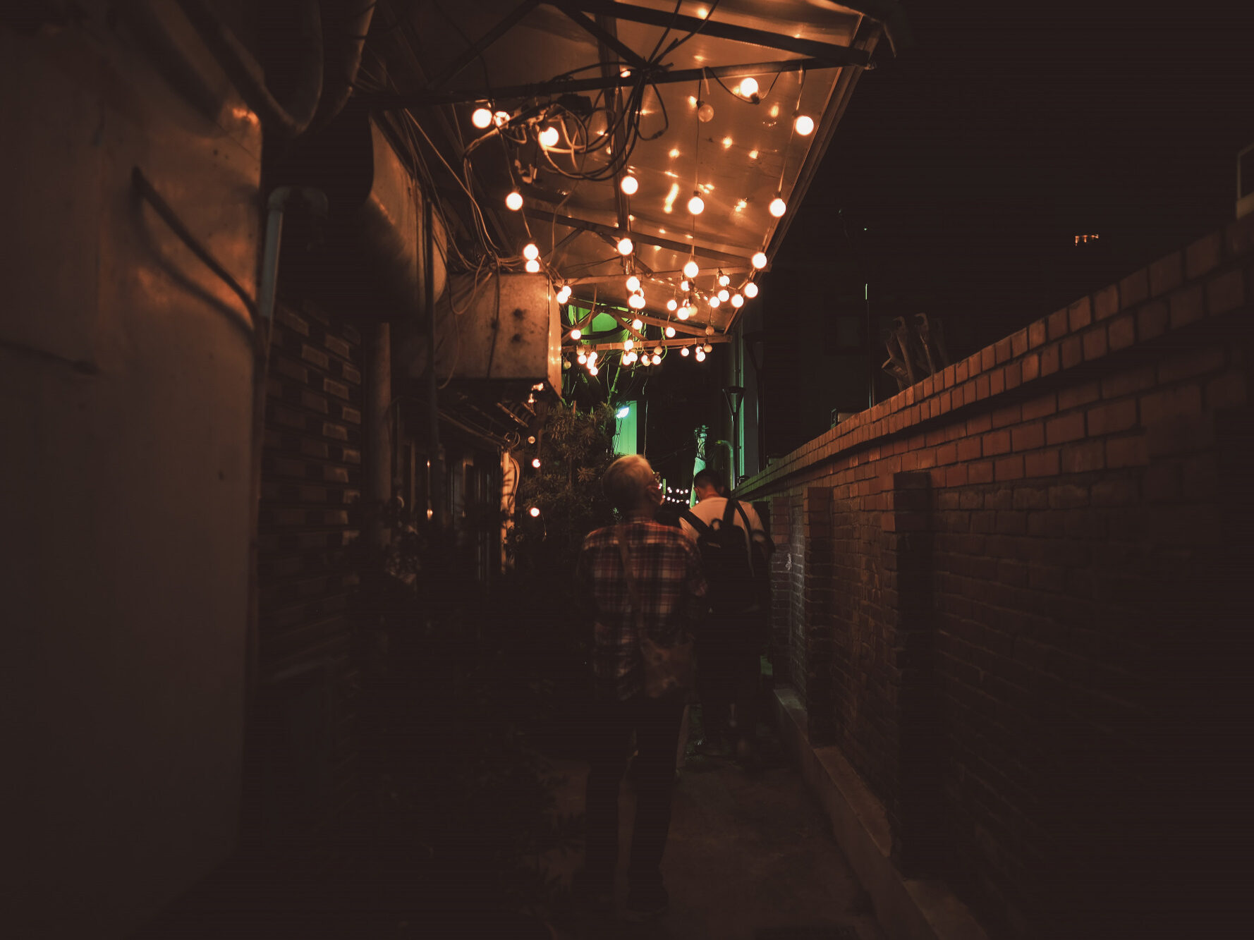 隨路燈指引,鑽進幽暗小巷,穿越那間播著那卡西音樂、門口有些姊姊聚集的卡拉OK,就會看見赤子…