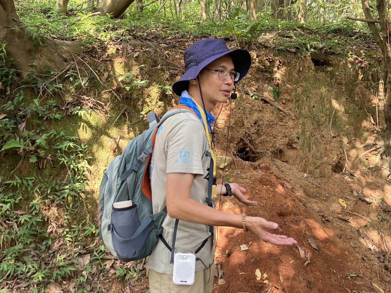 從阿里磅溪轉入生態農場,佔地10公頃的農場擁有大面積低海拔次生林和池塘型淡水濕地,完整多樣的棲地,使得農場內住著台北赤蛙、穿山甲、白鼻心、山羌等珍貴保育類物種。阿翔分享:「棲地消失,是野生動植物消失的共同原因,讓環境恢復原有的樣子,生物就會慢慢回來。」隨後指向坡地一處洞穴,引導旅人觀察小動物的蹤跡,可愛動物不再只是迪士尼卡通或動物園巧遇,當下的我們就在牠的生活圈裡。