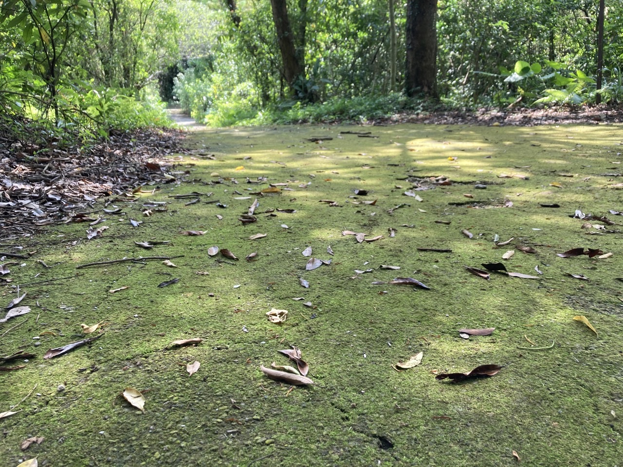 穿山甲挖的洞/農場地面遍布柔軟止滑的珍貴苔蘚(島內散步攝)
