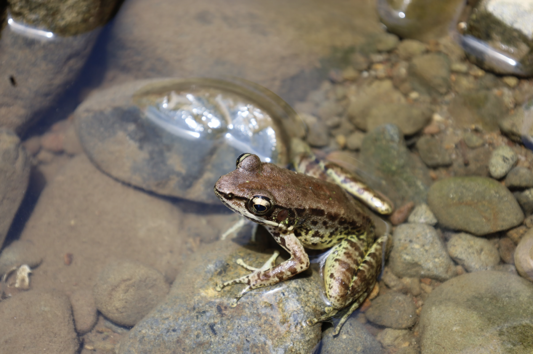 棲居於阿里磅溪中的毛蟹與蛙類(島內散步攝)