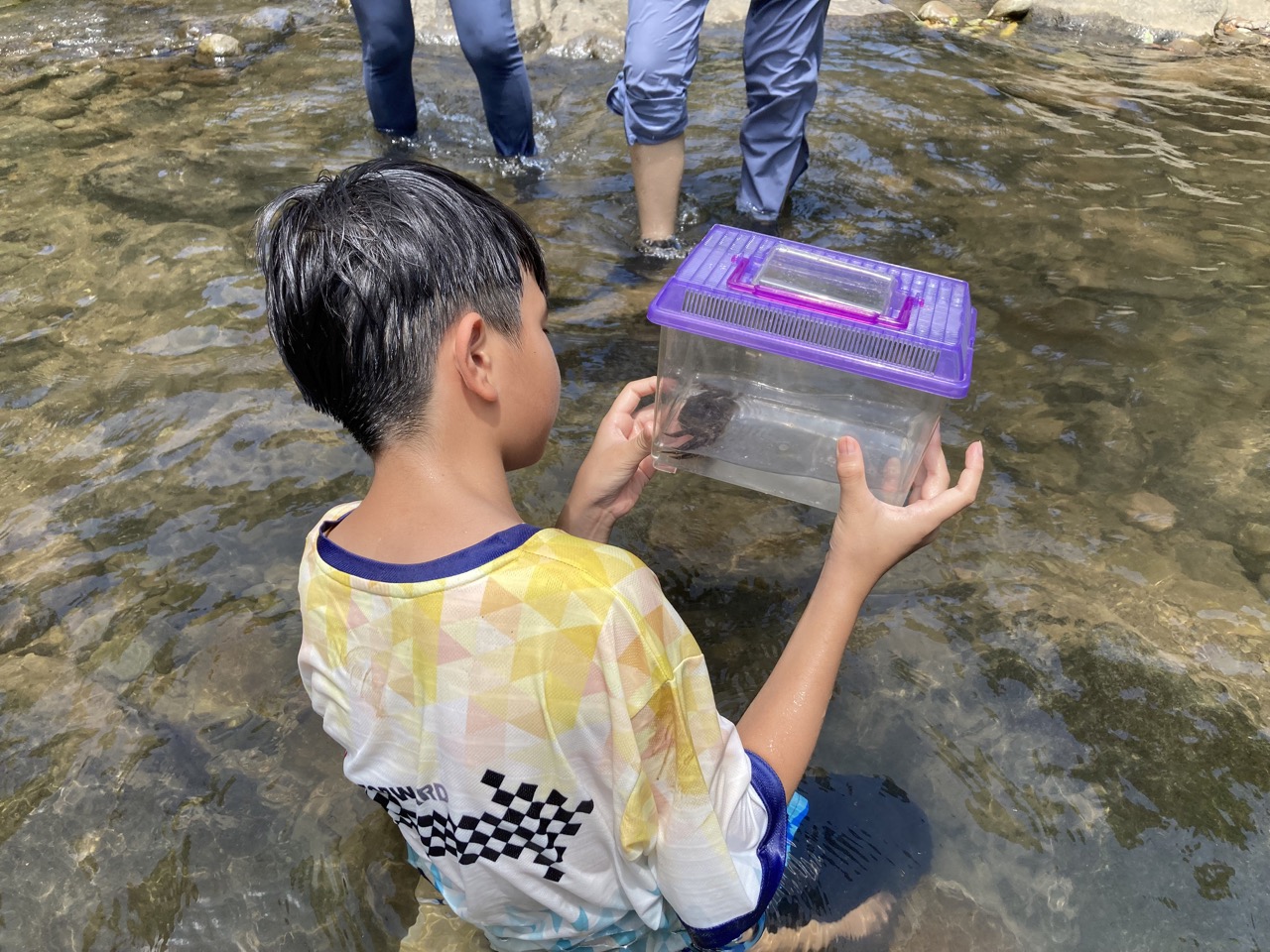 正當大家埋頭「覓石」,另一位嚮導阿蕊拾起了一隻毛蟹,看似渺小的它可是經歷過大風大浪,出生在下游出海口,一路逆流而上回到內陸溪流,可說是水生生物界的勵志代表。