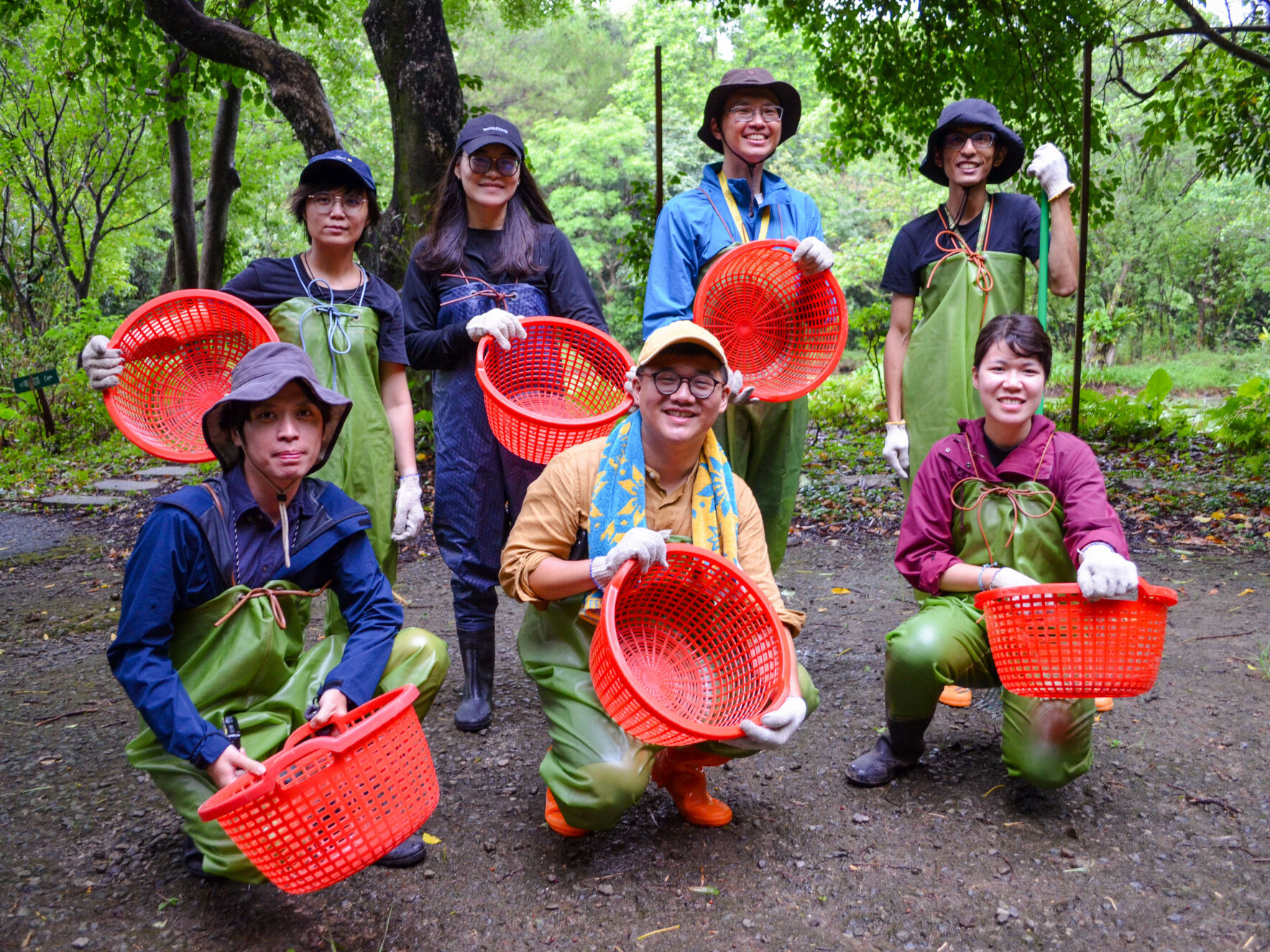 從原先有些懼怕水域、到一籃接著一籃地打撈,許多人和大自然融為一體,忘我地 「自主加班」:「太快了~可以再多三分鐘嗎?」因為看著滿池重見天日的過程,真是太有成就感,更有民眾打趣地說:「今天可以不用上健身房了!」泡在冰涼的池水儼然消暑祕方,不流一滴汗就能為生態貢獻。