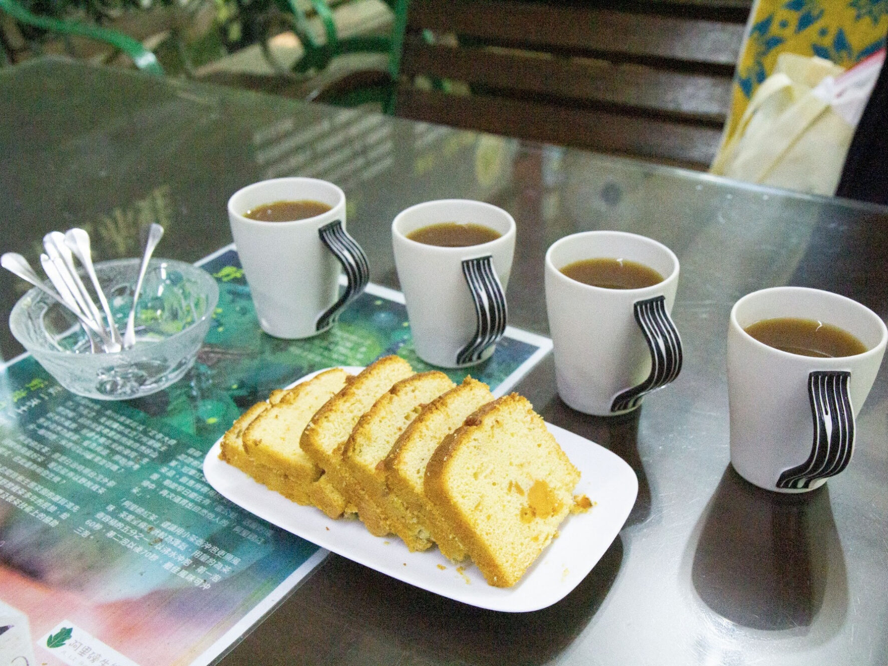 大夥兒戀戀不捨地上岸,島內散步遊程「在地好味」現身,分別以自然農法復育石門特有茶種「硬枝紅心」沏成的阿里磅紅茶,和來自臨近石門的金山地瓜做成的磅蛋糕,為大家補充能量,在一片茶香中回顧生態農場前世今生,更深度認識當地環境現狀和倡議。