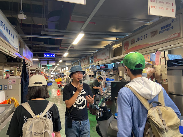導覽員Kevin帶領大家與攤商們互動,深度認識食材的來歷及烹煮技巧(島內散步攝)