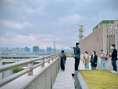 導覽員帶民眾從環南市場頂樓俯視周遭生活圈、回顧艋舺市場文化(島內散步攝)