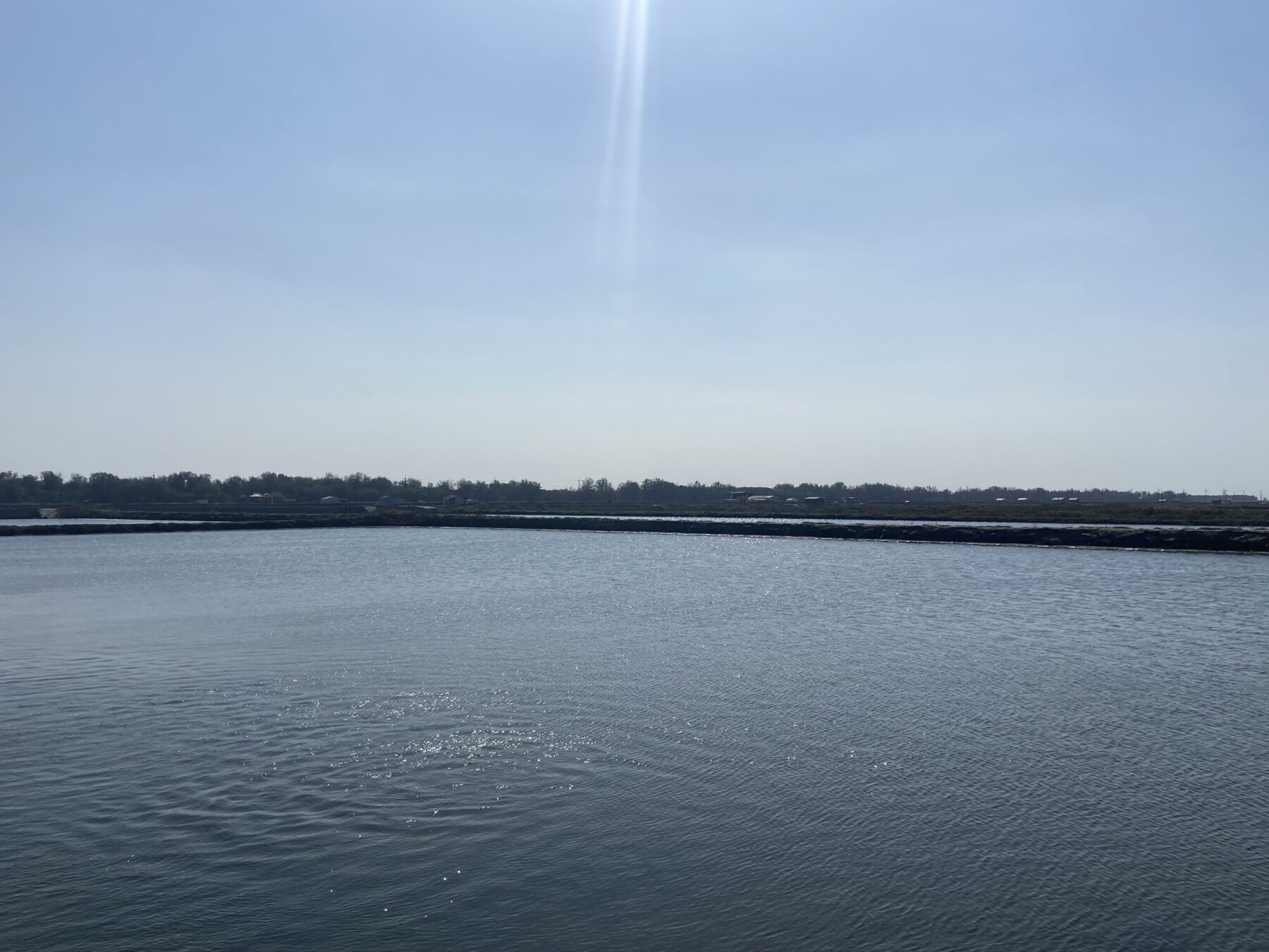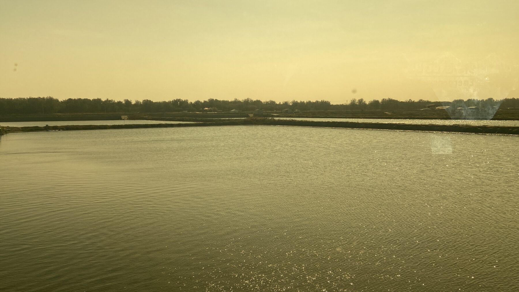 連綿魚塭,在陽光灑落下好似明鏡。(島內散步攝)
