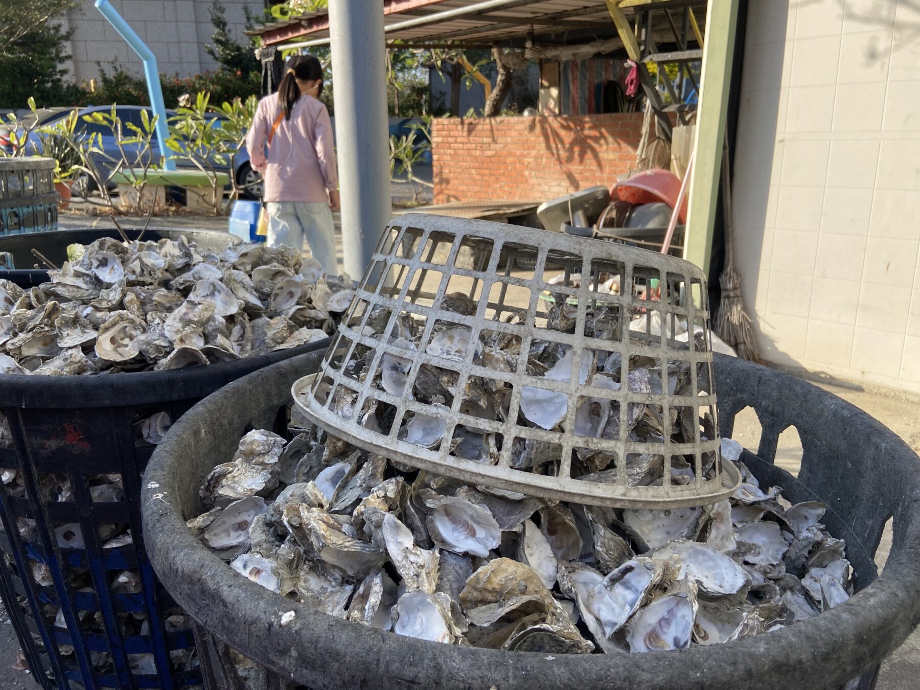 將產業廢棄的蚵殼再生,運用在下一次的養殖過程。(島內散步攝)