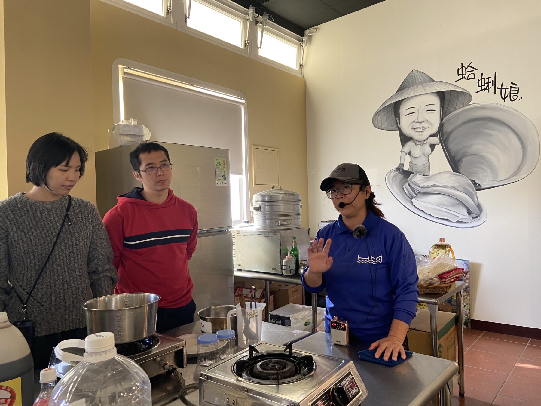 想進一步揭開食物產製的面紗,近身體驗「職人的一天」就會明瞭。首站來到魚塭旁的灘地,在老師的帶領下認識蛤蜊棲息地;拿起小耙子淺淺開挖,感受貝類與工具碰撞的渾圓身影;進階一些,循著蛤蜊的氣孔「一指神功」預測動向。從分組競賽到篩選蛤蠣,無不看到大家徜徉在放鬆而不拘束的氣氛裡,完成分工合作。
