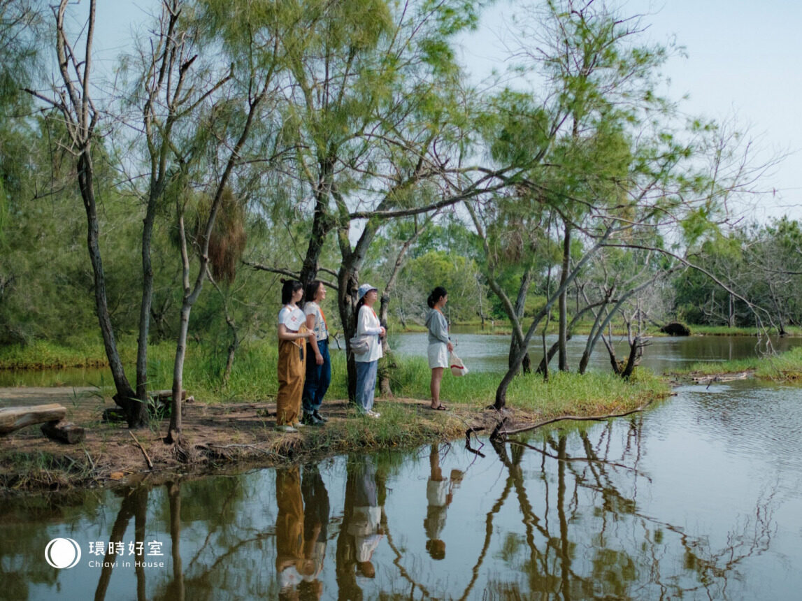 連綿魚塭,在陽光撒落下好似一片片明鏡,這樣的美景並非理所當然,而是在地居民共同保衛的成果。途經日治時期成立的育苗場,曾進成特別提及:「全台灣濱海植物,多半都是從這邊育苗出去的。」這樣的育苗歷史,和好美里的緣分巧妙延續至今。