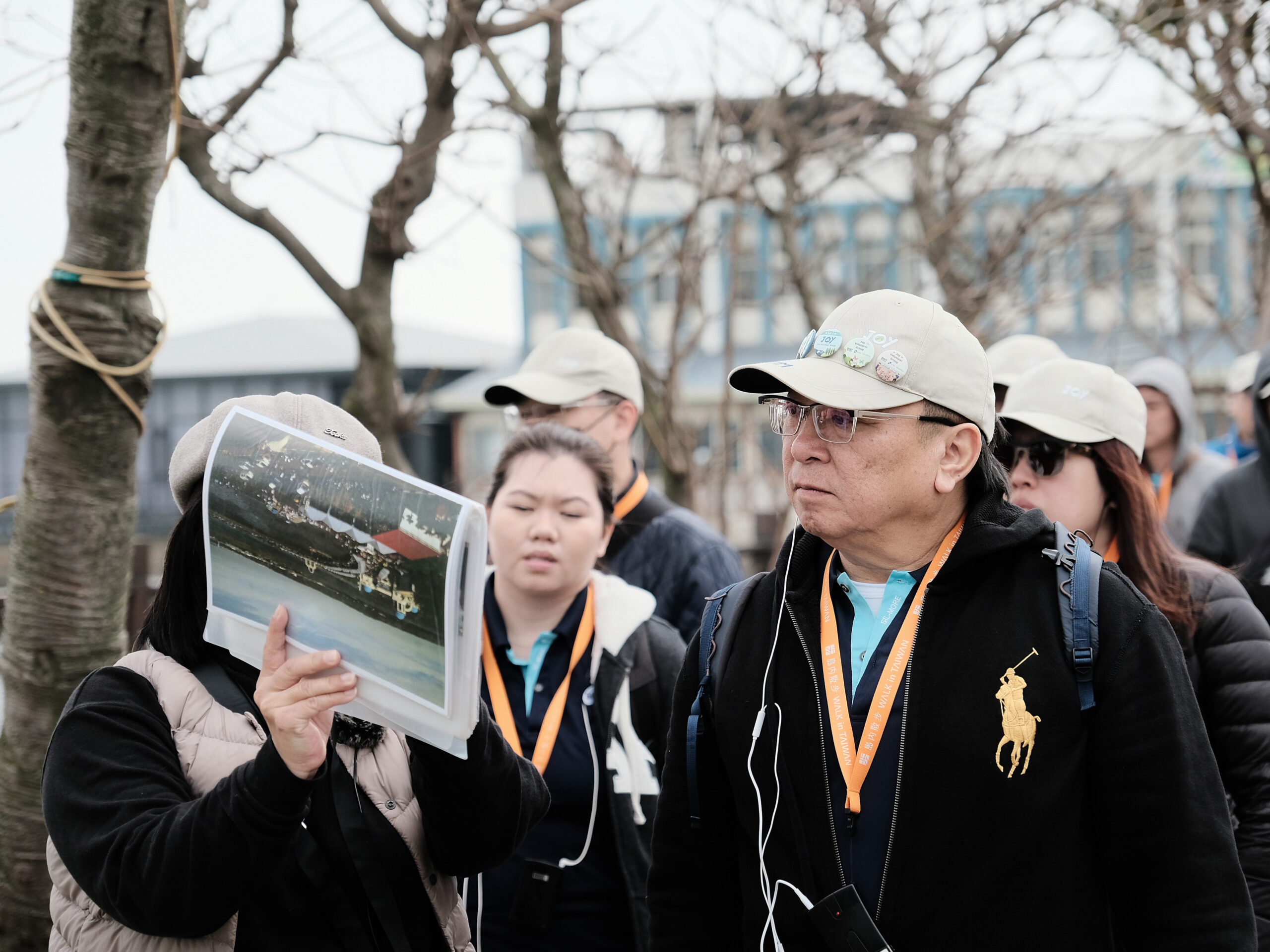 楊天祥董事長與公司同仁⼀同了解南寮的興衰演變(島內散步攝)
