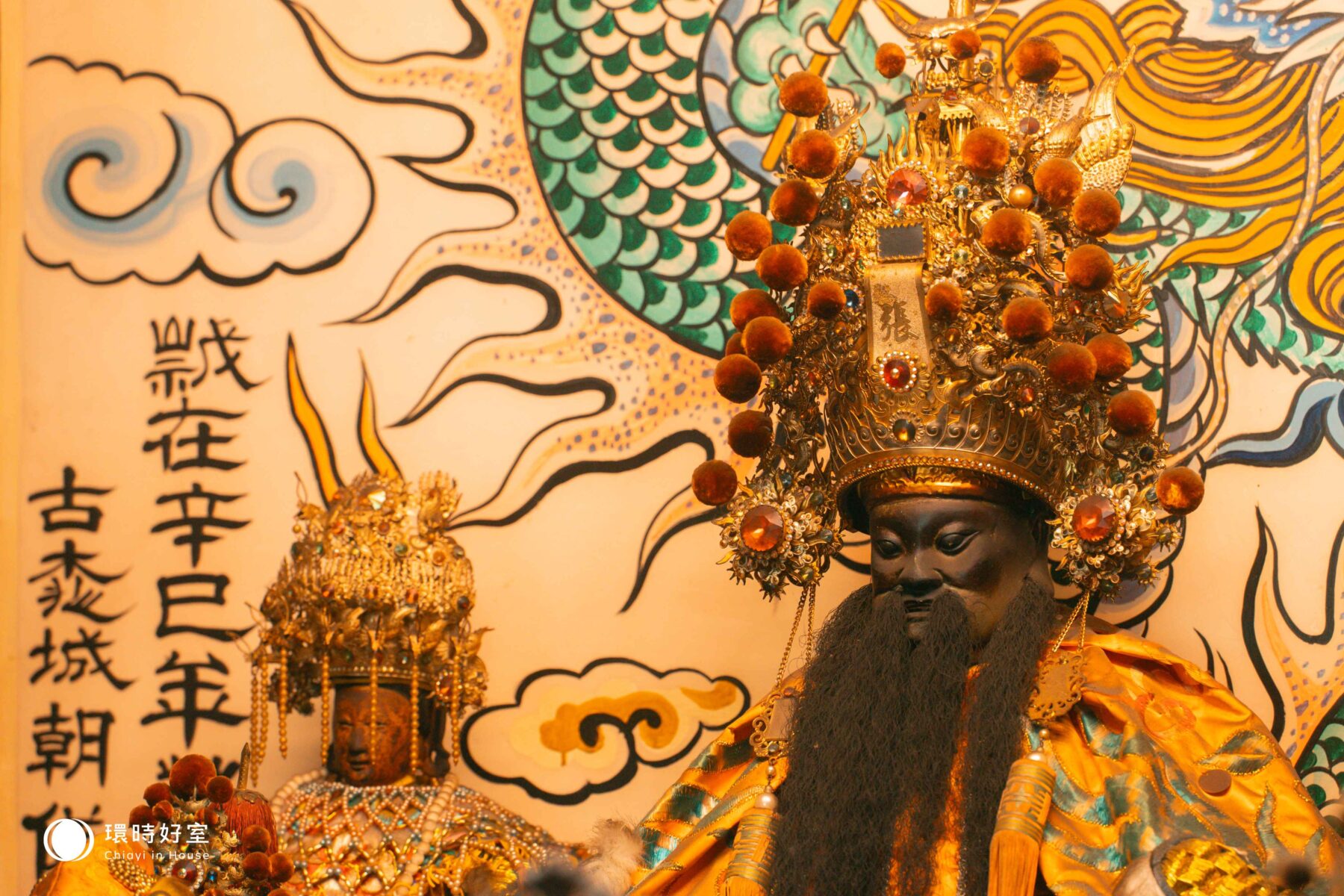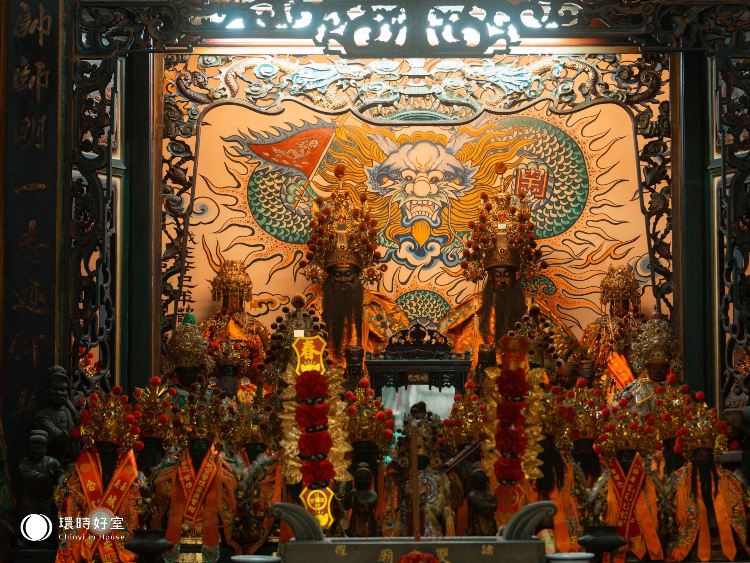 神龕後的背板以手工彩繪,呈現出精緻的細節和色彩。(島內散步攝)