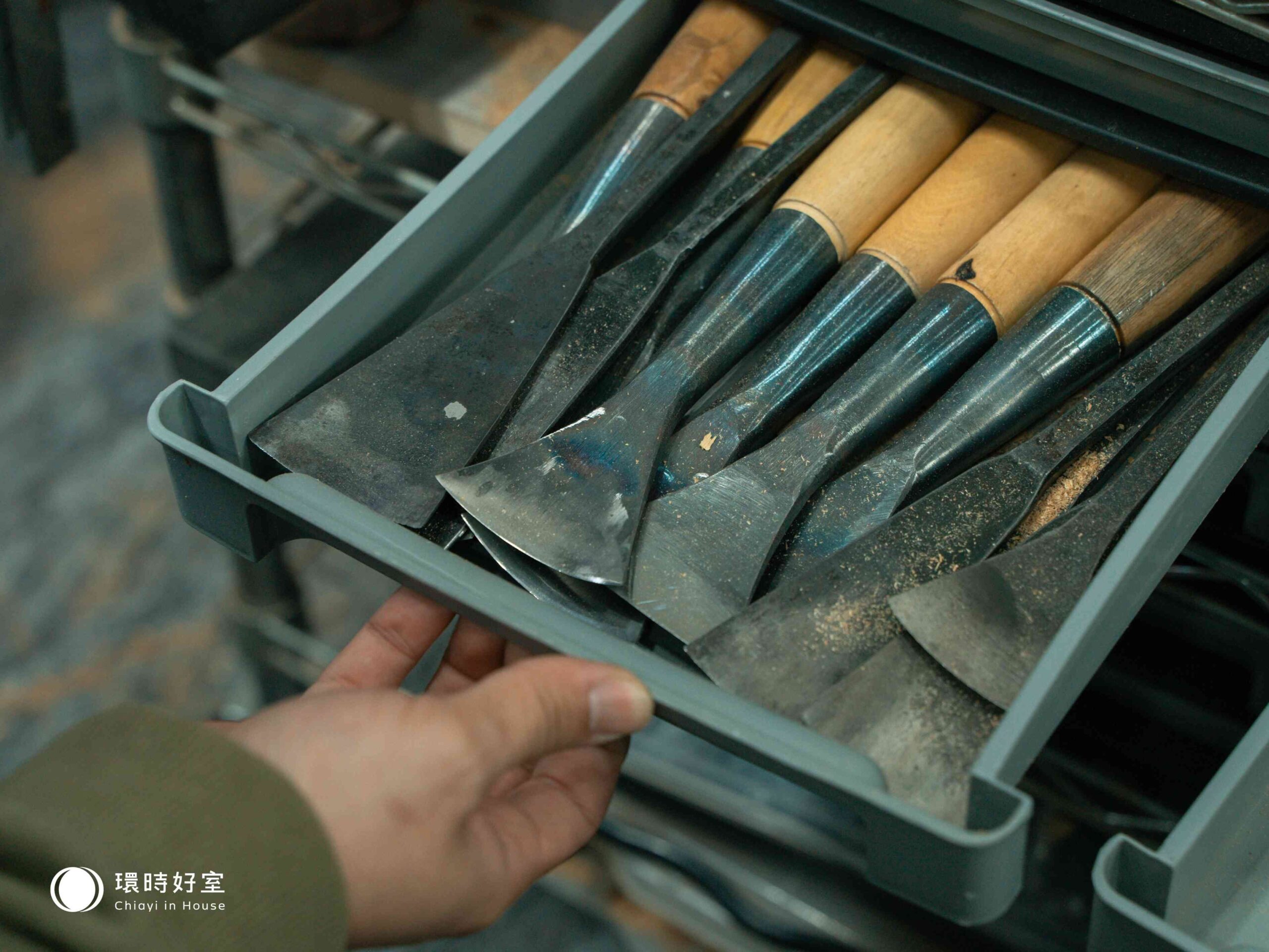 一層一層的抽屜,擺放各種功能的雕刻工具。(島內散步攝)