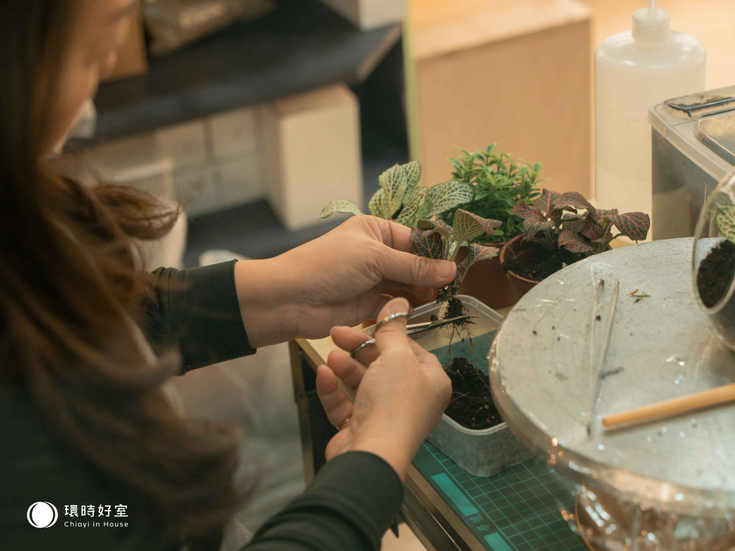 從修整植物、鋪墊土壤、配置微型世界都是老闆獨一無二的創作。(島內散步攝)