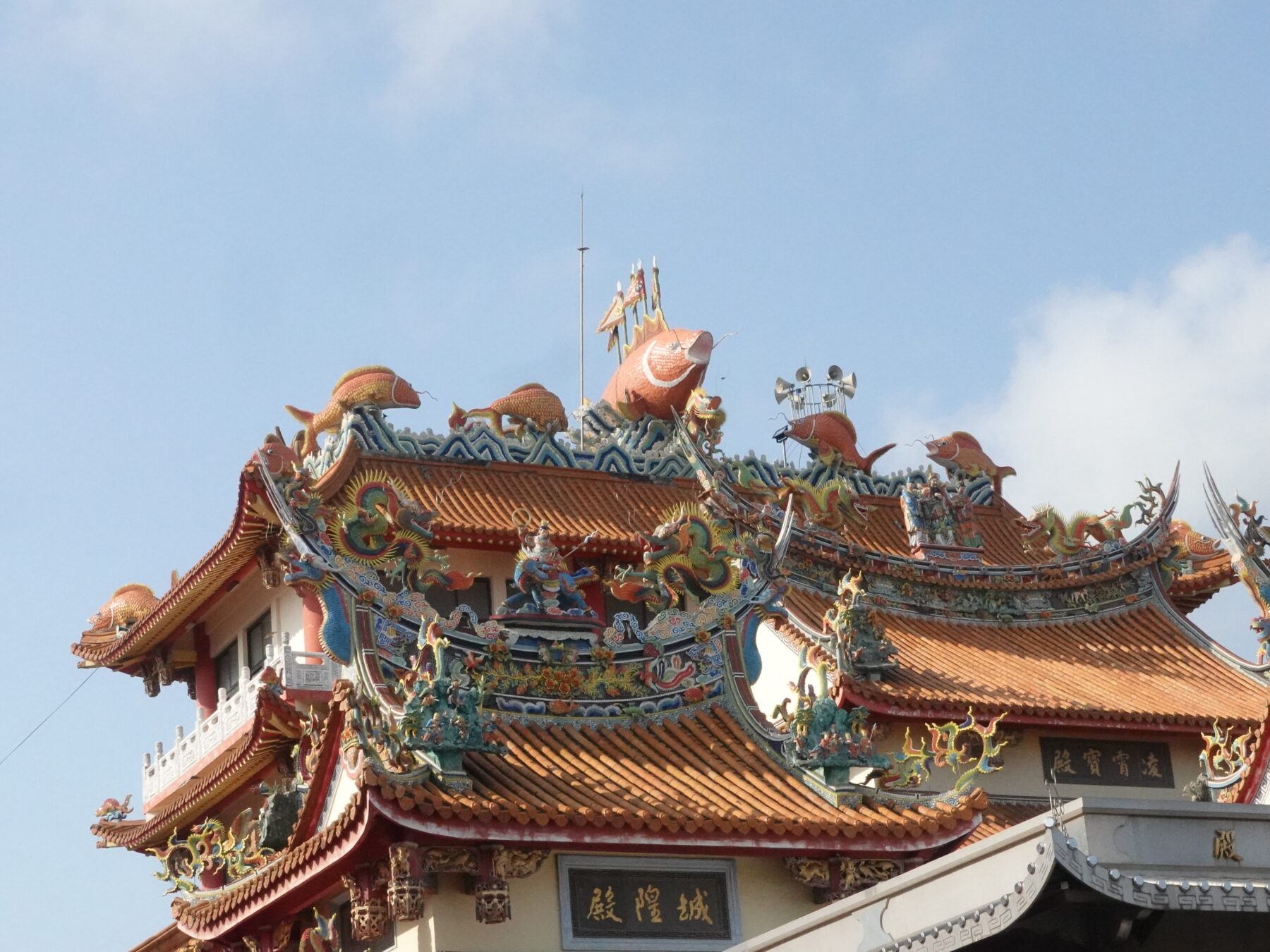 西港慶安宮的屋簷、裝飾中有滿滿的鯉魚出沒(島內散步攝)