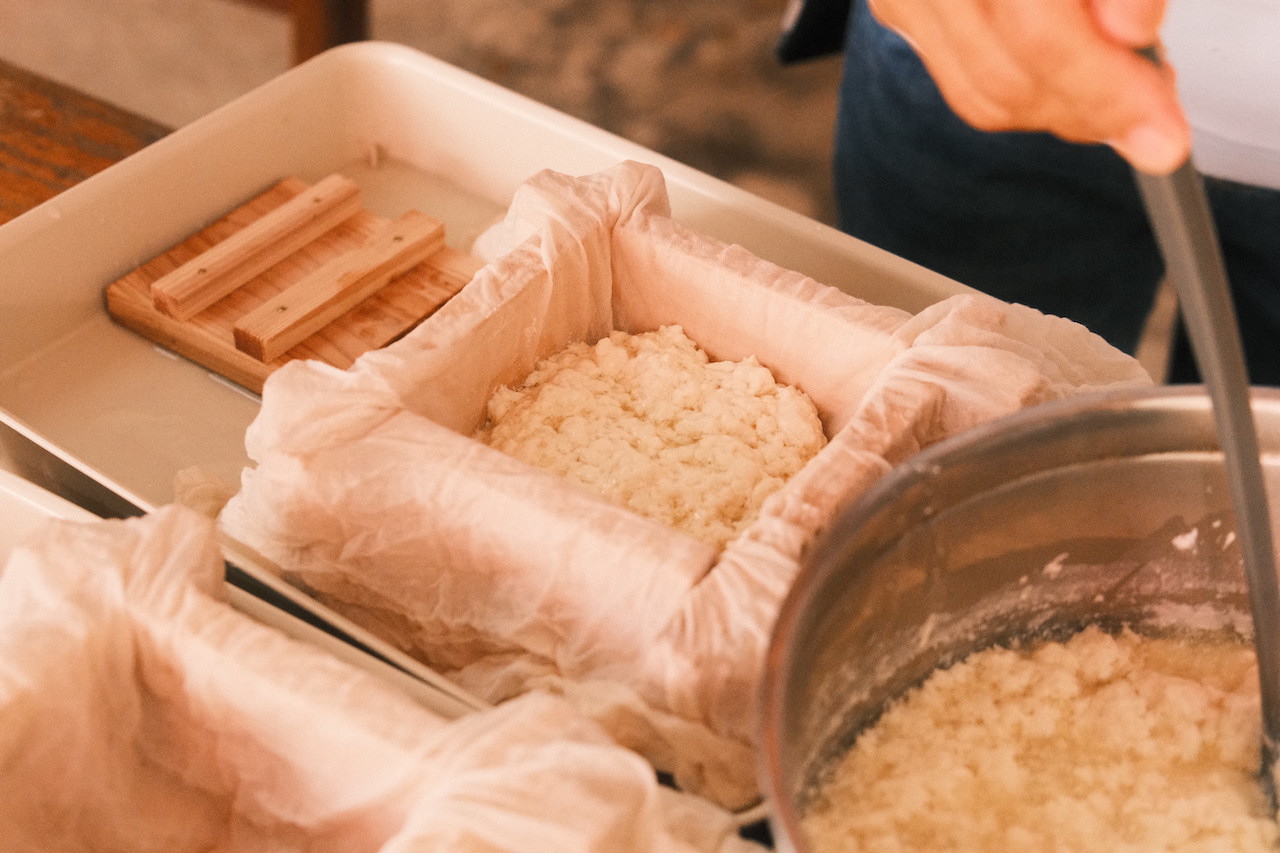 享用午餐前,我們還將親眼見證、親手接觸到「一塊豆腐的誕生」,自己為自己加菜!我們也將透過大溪媽媽們的溫馨分享,了解一粒黃豆是如何蛻變成一塊香噴噴豆腐的成長過程,原來做豆腐可以這麼簡單又療癒。