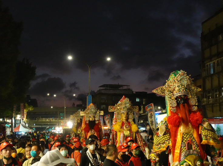 12 / 02 ( 六 ) 第⼀天主要巡視雙園地區,在傍晚進入俗稱「⼀級戰區」的環河南路,能在封街的⼤⾺路上,⼀睹⼤量紅壇接駕的熱情與震撼。
