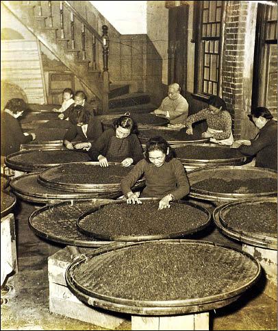 ⼤稻埕作為茶葉⽣意的核⼼,不僅茶⾏林立,在旺季時,每天更需要多達兩萬多名的女⼯協助撿茶。揀茶女並肩群聚於亭仔腳的景況,是⼤稻埕的地⽅特⾊,更是台灣繁榮的象徵。