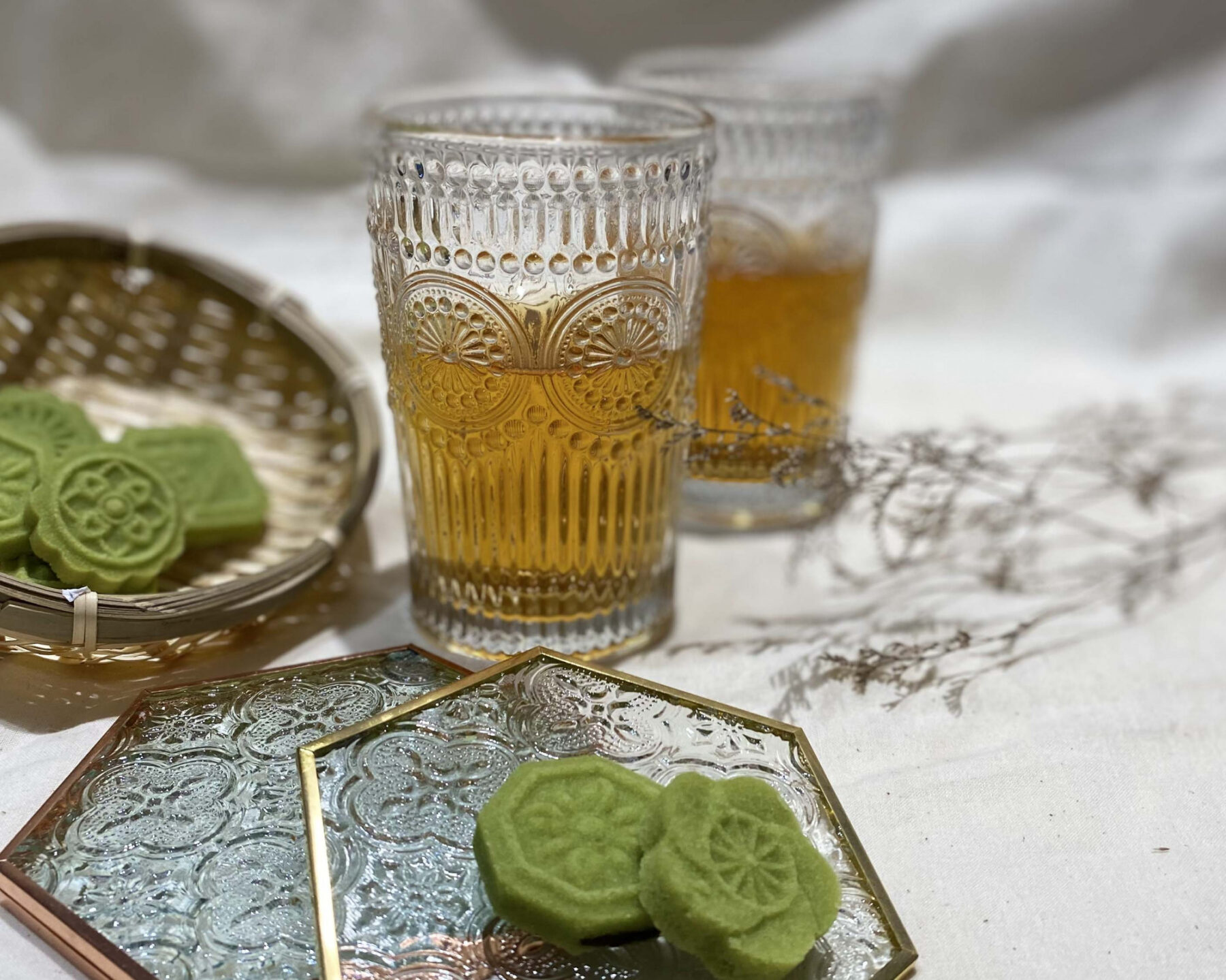 從⽿熟能詳的⺠謠到唸歌,搭配⼤稻埕百年老店李亭香糕餅搭配有記名茶,帶你品嚐⽉琴的不同表情,