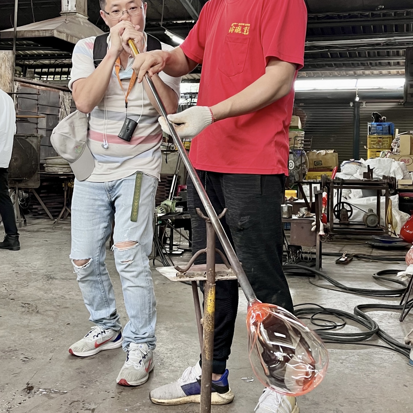 ※吹製玻璃環境⾼溫,提醒您注意⾃⾝安全。