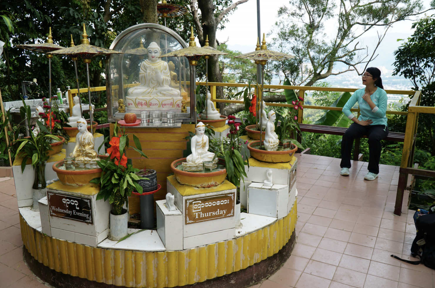登到佛塔所在,像是走了一段朝聖之路。看見緬甸移⺠們共同捐獻建造的佛塔,深深體會在緬甸住⺠所說的「食物溫暖身,佛教溫暖心靈。」