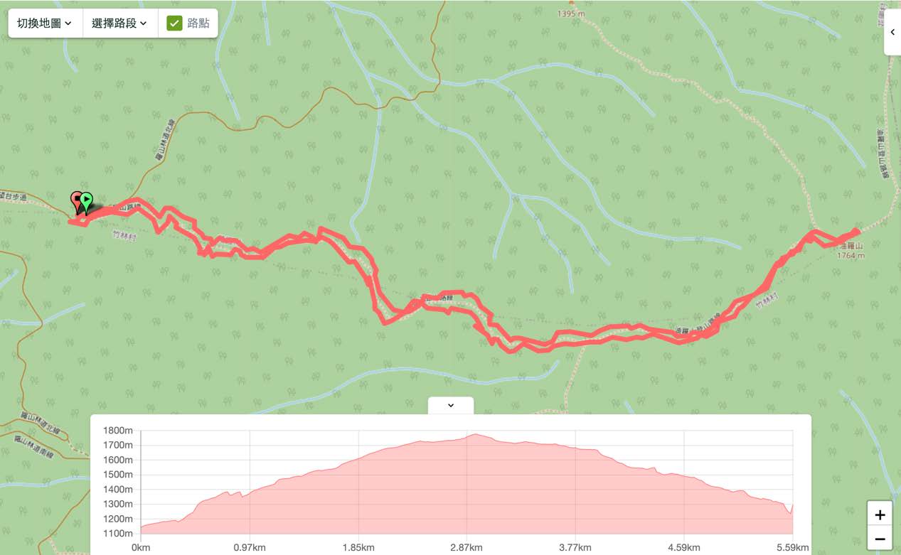 爬升:油羅⼭三⾓點海拔為 1764 公尺,登⼭⼝海拔約 1152 公尺左右,約需爬升 600 公尺,⼀開始的路段就是陡上,對於體⼒不好或是平常沒有在運動的⼈並不算好走,要前往的⼈請先斟酌⾃⼰的體能狀況喔!