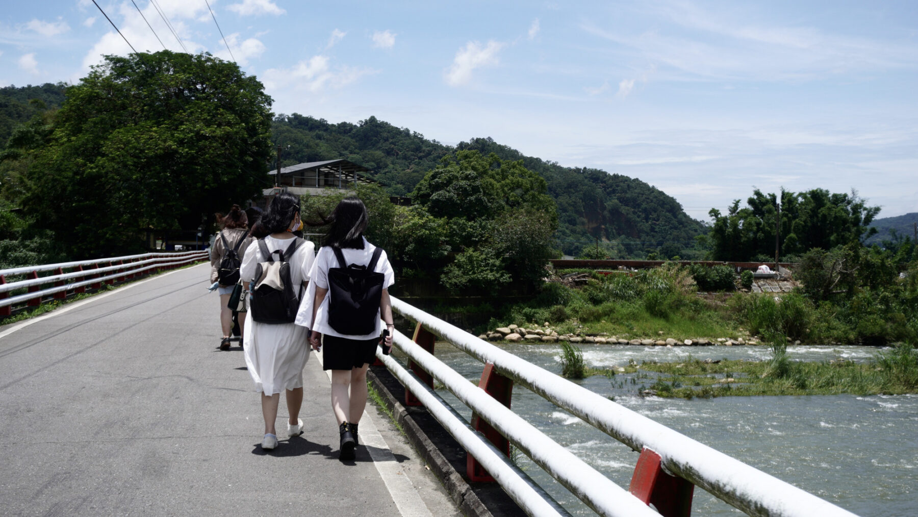 老街的盡頭,⾛進鄉間⽥間⼩路,兩旁盡是稻⽥與仙草⽥美景,途中在鳳凰樹下歇息乘涼,最後步上南⼭⼤橋,享受⾝邊的流⽔潺潺。