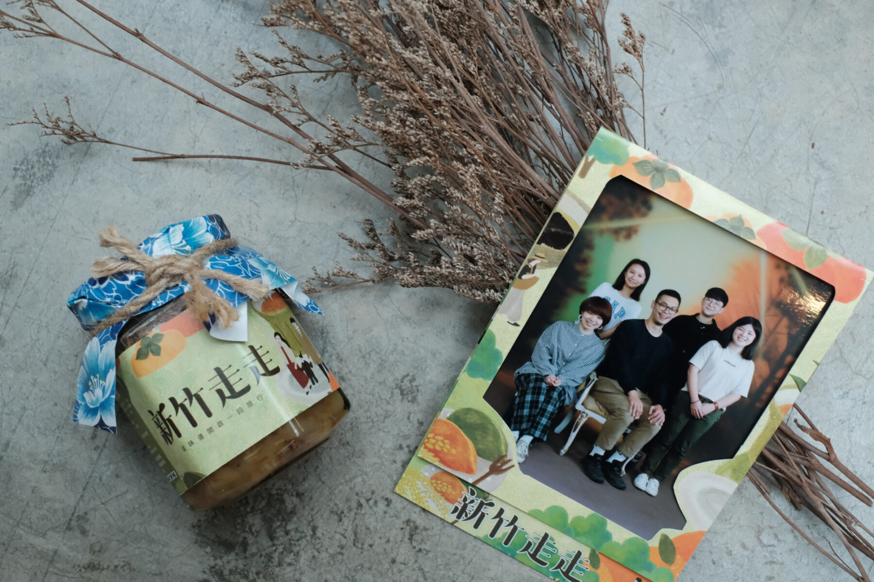 ⾏程附贈:新⽵走走紀念品-⼿⼯柿染布⽅⼱、客家油蔥酥及復古老照片
