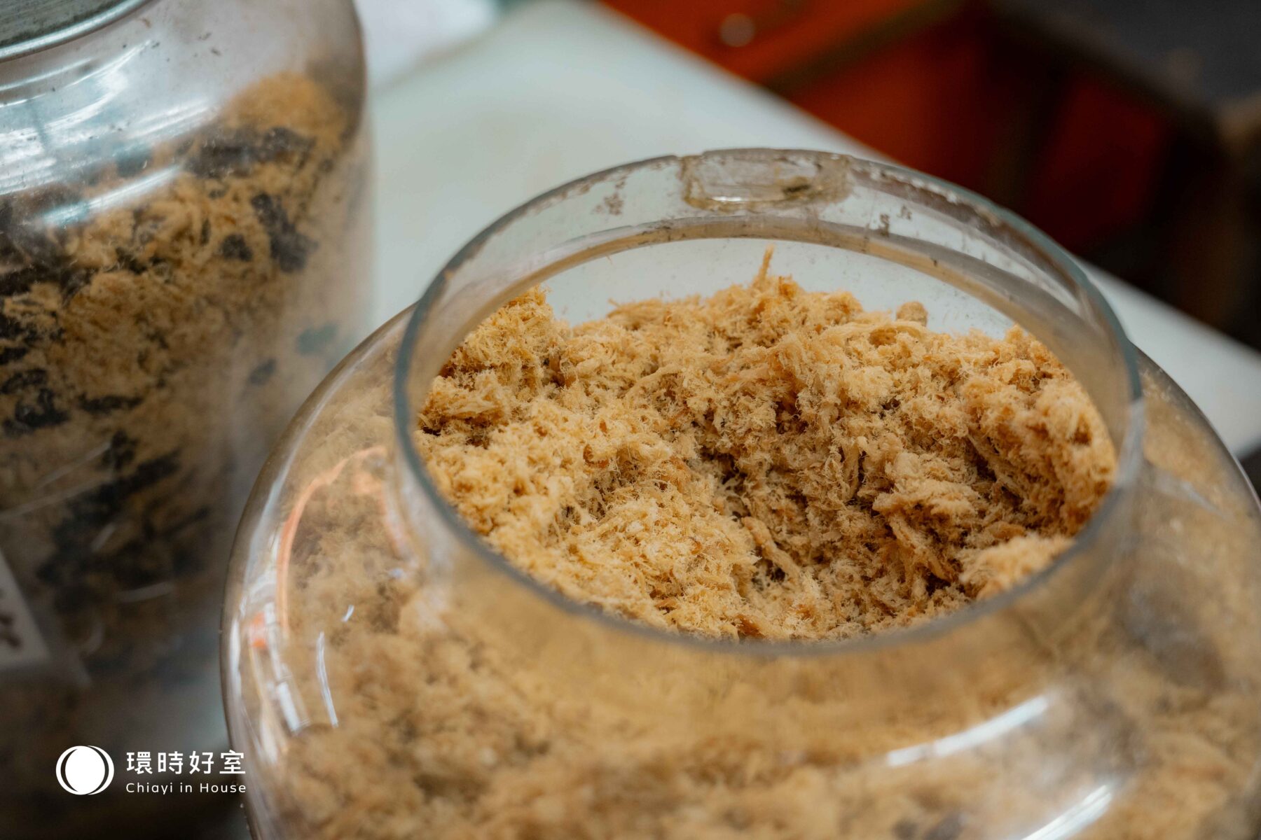 來到嘉義市西市場,一股肉香味從街邊飄出。這家「台北珍肉脯店」,正翻炒著一鍋又一鍋的肉酥(肉鬆),令人食指大動。店鋪早年自台北搬遷後落腳嘉義,遂保留「台北」二字,而「珍」字指早期肉類食材相對珍稀,市場內不少肉品店皆以「珍」字取名。