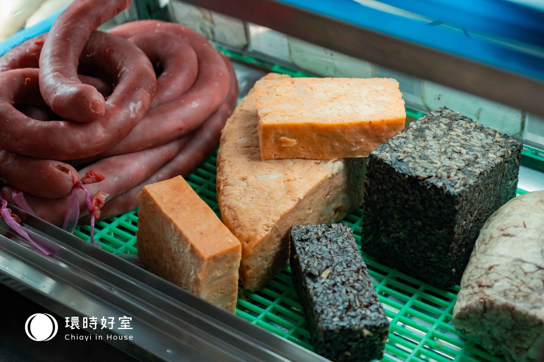 若你對豬內臟避之唯恐不及,可以從老闆的自信之作「四大天王」挑戰起:粉香腸、粉豬肺、蟳粿及地瓜豬血糕。,其中「蟳粿」及「地瓜豬血糕」更是嘉義獨有的饕餮珍品外形神似玉子燒的「蟳粿」,是滑嫩蛋液混入麵粉、荸薺、豬油脂丁及多種蔬菜蒸熟而成的焦糖色方塊體,口感扎實綿密,蘸上店家特製的醬料,便是一道營養又開胃的佳餚;而擁有 80 多年歷史的「地瓜豬血糕」,原是先民用來補充鐵質的鹹品,如今已成為嘉義巷弄裡不可或缺的臺灣味。