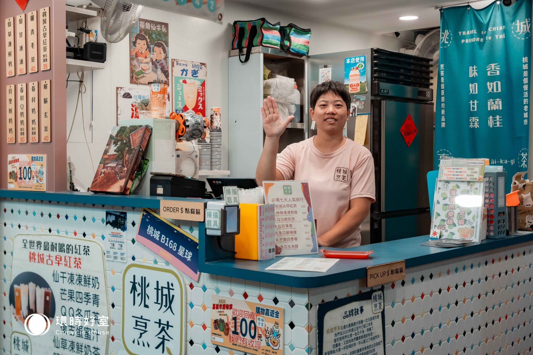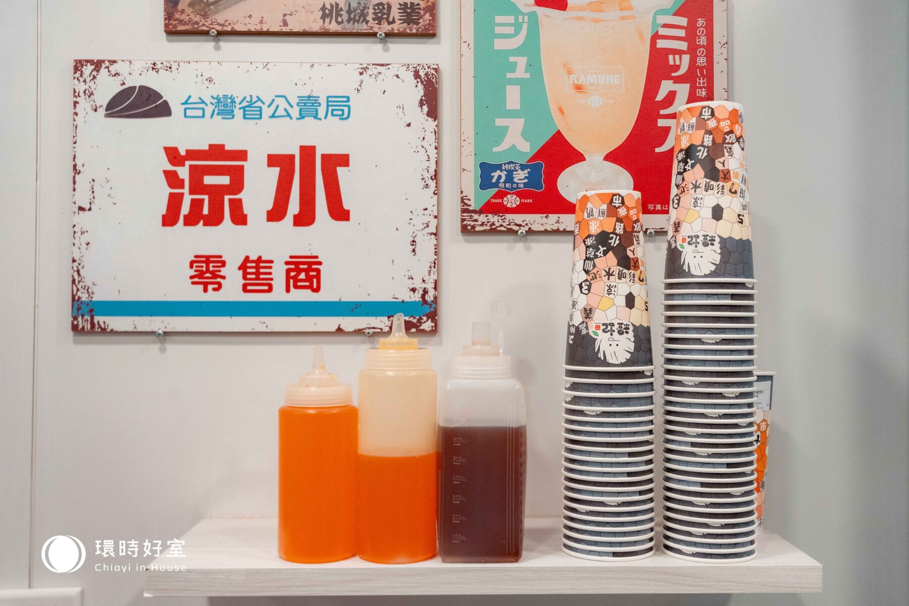 ▲「桃城烹茶」牆上的招牌,復刻出傳統紅茶飲料店。(島內散步攝)