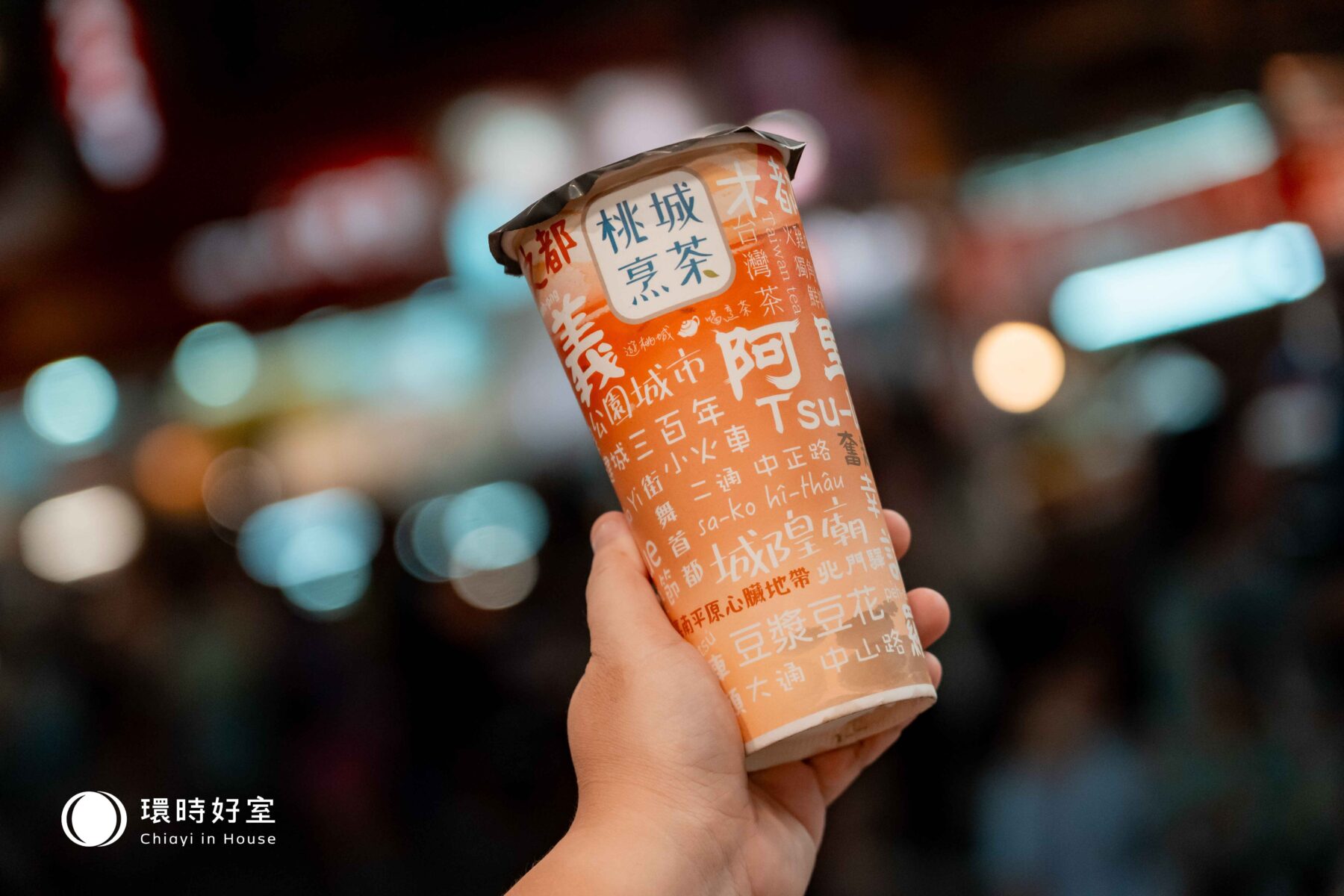 ▲「桃城烹茶」飲料杯身設計,融入許多與嘉義有關的關鍵詞。(島內散步攝)