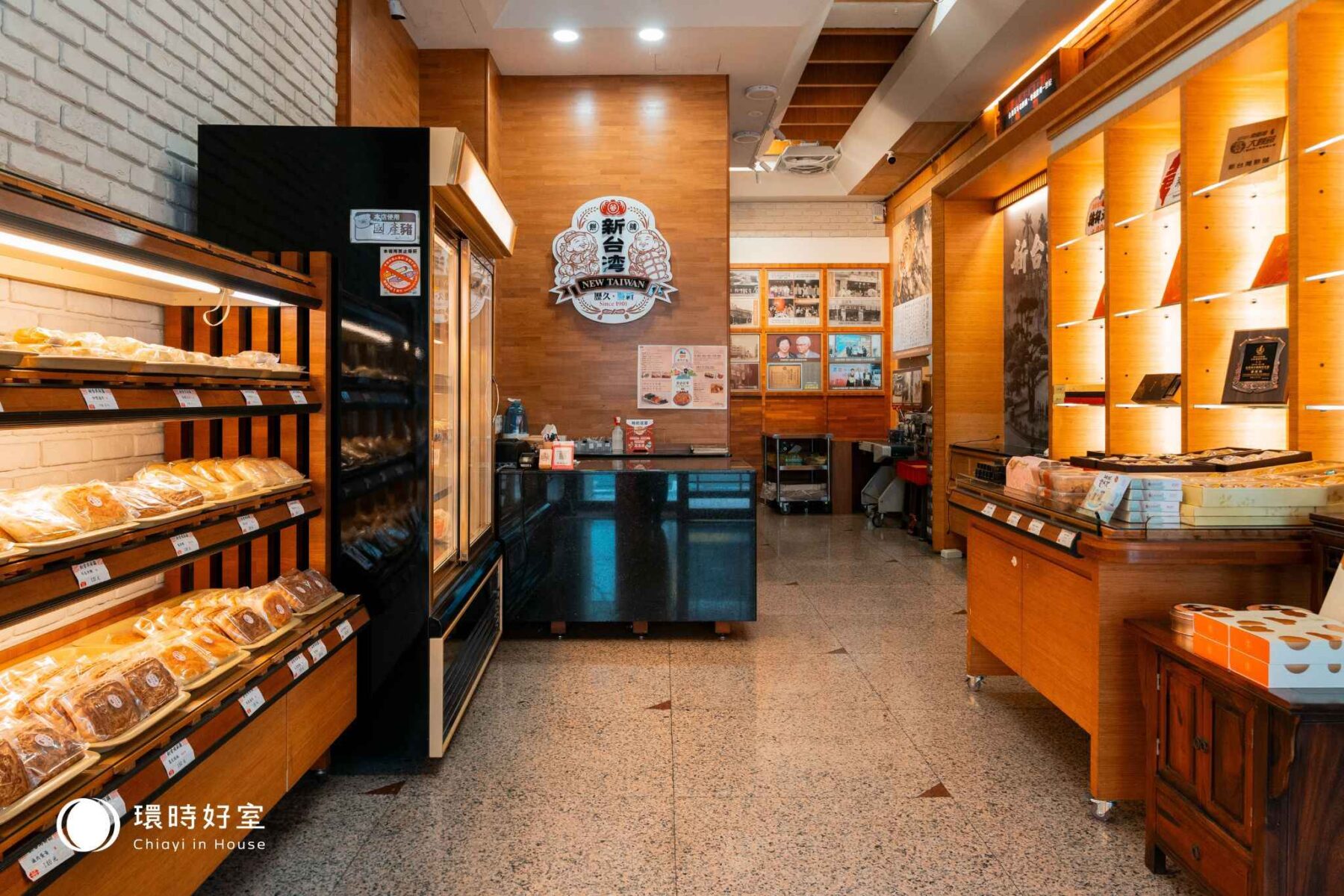 「新台灣餅鋪」裡, 展示著各時期店舖的影像,也記錄著百年來的嘉義市區街景。如今第三代一同加入守護老牌子的行列,在老店的基礎之上結合嘉義的地方特色開發新的商品,「歷久彌新」這個由二代老闆盧昆常立下的標語也正持續在店史當中熠熠生輝。