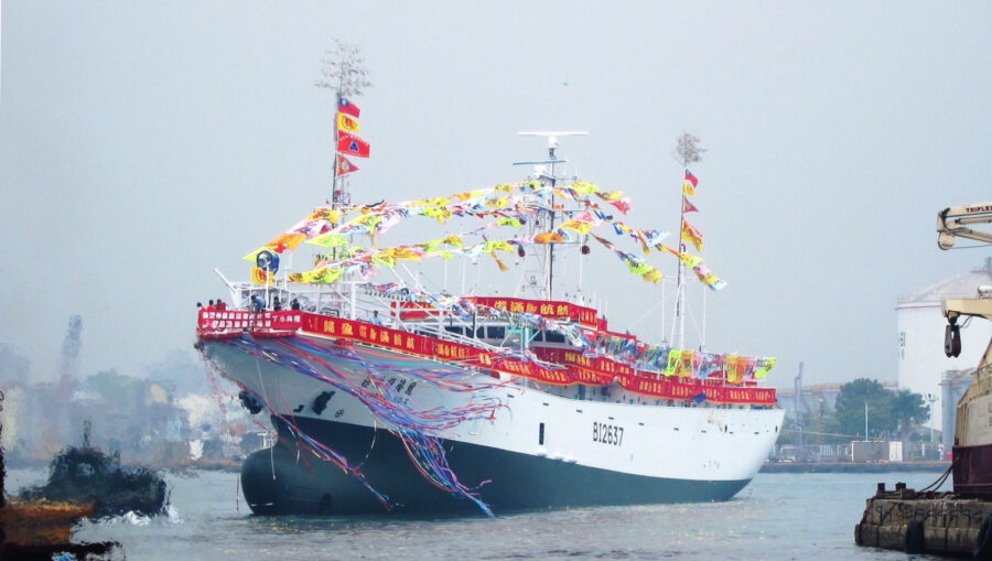 一艘新造好的大船在下水典禮時,會需要耗資多少錢將大漁旗掛滿整船,來祈求滿載、豐收呢?