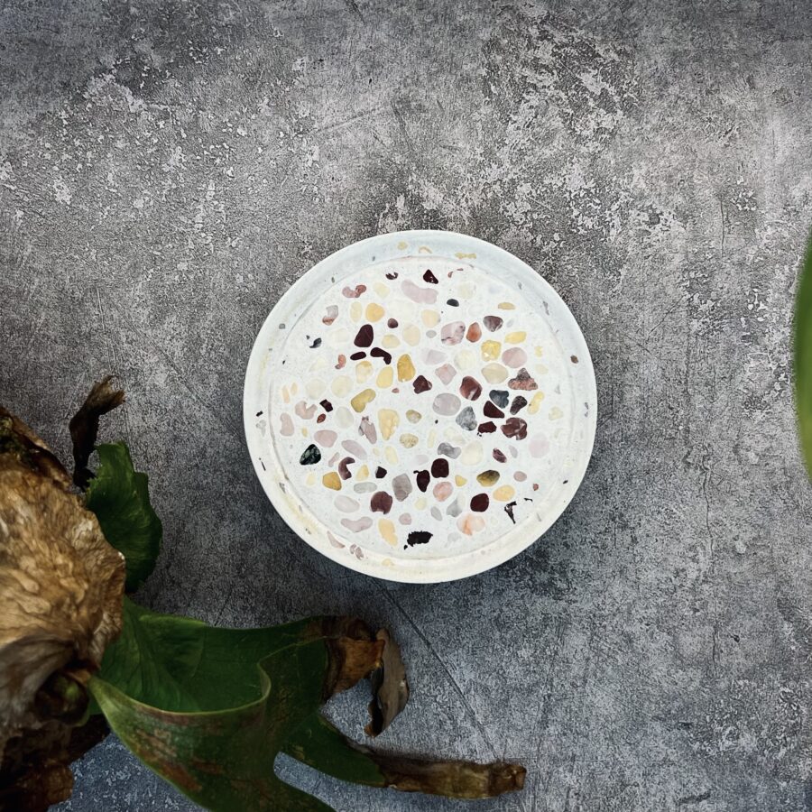Good Form/主理人畢業後對磨石子非常感興趣,原先找師傅學習,卻被打槍認為女生無法做粗工,也因為師父的打槍開啟了磨石子的系列計畫(Terrazzo plan·磨石計畫),雨蘭開始自己上網學習,並重新改良設計,使這項工藝從大型堅固冰冷的地板縮小並轉化成生活的器物。