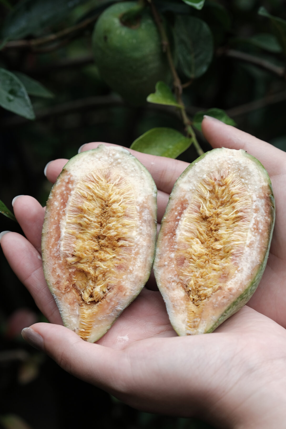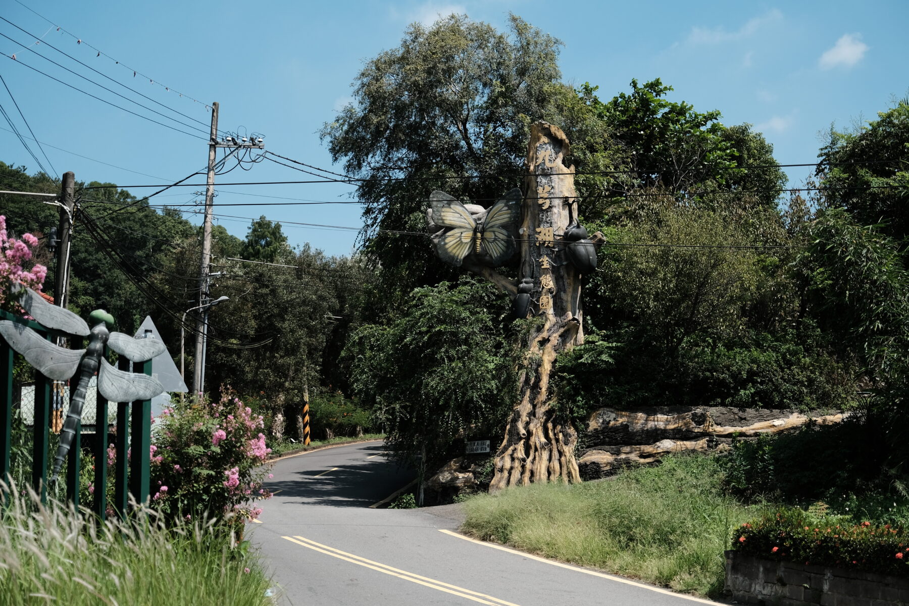 「轉型休閒農業後,不用為了果樹灑農藥,留下好環境,生態其實就慢慢回來了。」除了愛玉小蜂作為環境無毒的守門員,大坪社區內栽種許多高士佛澤蘭,年年上演全世界唯二的斑蝶遷徙大戲,而一棵棵光蠟樹上,也有清楚可見的獨角仙啃食痕跡,好環境是不言而喻。而當仔細觀察,也會發現,大坪社區的樹種也有講究、也有詩意。九福路之上,前段是白千層及水黃皮、中段是阿勃勒及落羽松、後段則有台灣欒樹等,一年四季蘊藏與此。