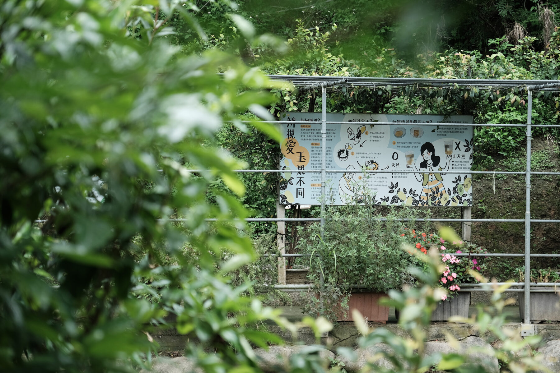 對此,理環境的第一步,大坪社區選擇的不是大興土木、剷平所有舊事物,反而靜下心,看看社區裡有什麼。幾經觀察後,腦筋動到了廢棄梨園的水泥柱上,便試著重整荒地,讓台灣特有種愛玉在此攀附。「很多人不知道愛玉其實是台灣特有種,全世界就只有台灣有,因為必須有愛玉小蜂才能繁衍愛玉物種,而且愛玉小蜂對污染很敏感,甚至連蚊香都不行,要環境很好的地方才能生存。」經過幾年研究以及水保署的支持,大坪社區從200多種愛玉品種裡,選定果膠產量豐富的「紅九」愛玉,再經由全台跑透透的登門拜訪學習、邀請專家到場指導,慢慢湊齊人工栽種的天時地利,才實現平地種愛玉可能,更發展各式體驗活動。