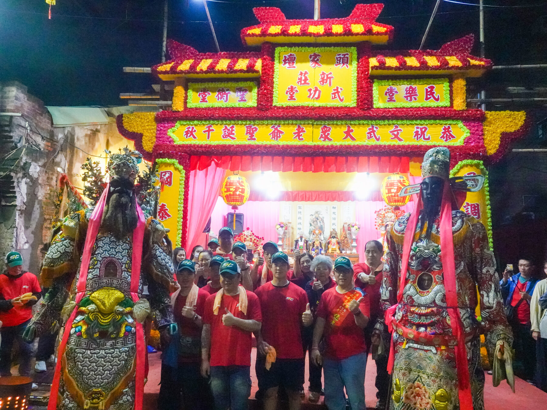 和新莊地藏庵文武判官合影的頭家蘇敬迪與工作人員