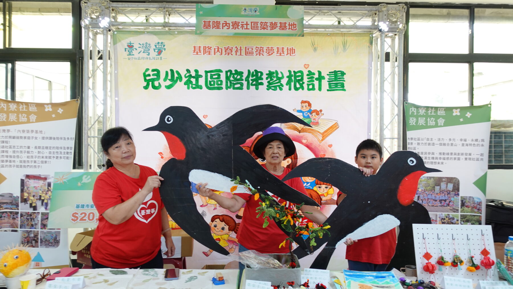 基隆內寮社區的孩子也帶來「家燕」主題展演——象徵家與幸福的手繪燕子在舞台上飛舞。志工大姐笑說:「內寮老街幾乎每戶屋簷下都有燕子巢,只要燕子回來,就代表那家人要旺啦!」
