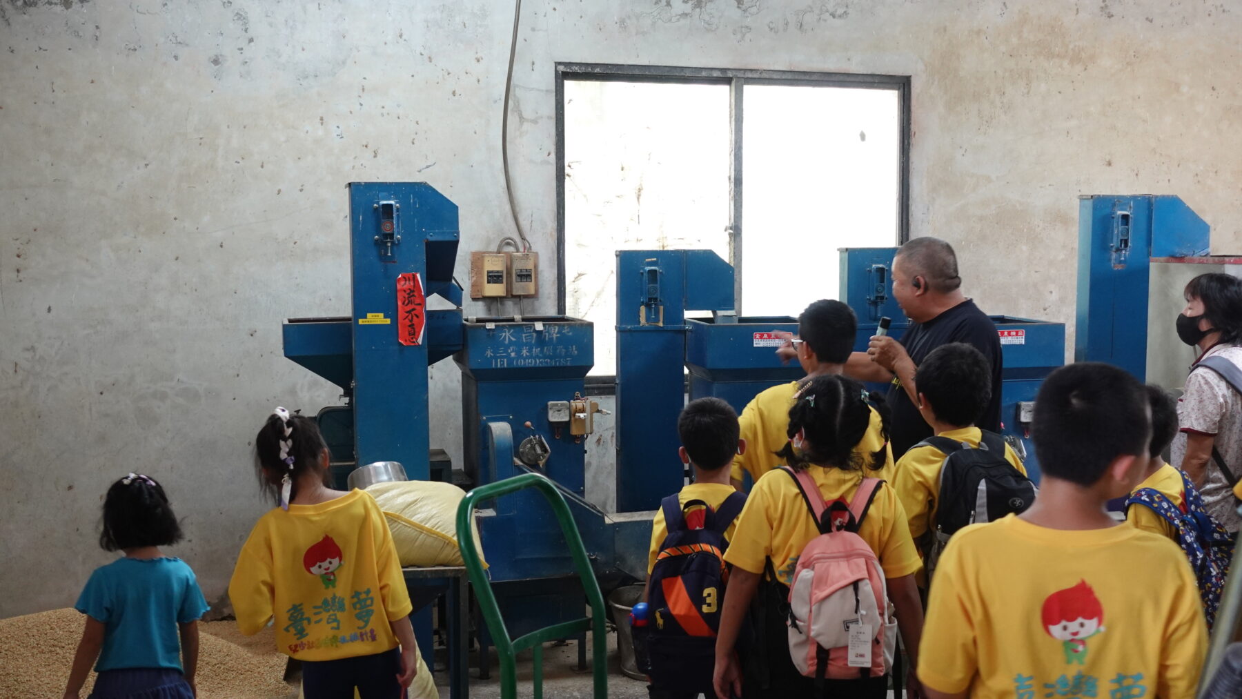 十月入秋,正是稻米收成的季節。沿著小路走進社區,傳來一陣低沉的機械聲,那是已有五、六十年歷史的「正莘碾米廠」。主人莊榮智爺爺握著麥克風,手有些顫抖,但語氣裡充滿自豪。他向孩子們細細講述稻米從收割、烘乾、脫殼到精米的過程,每一步都蘊藏著農村歲月的節奏。