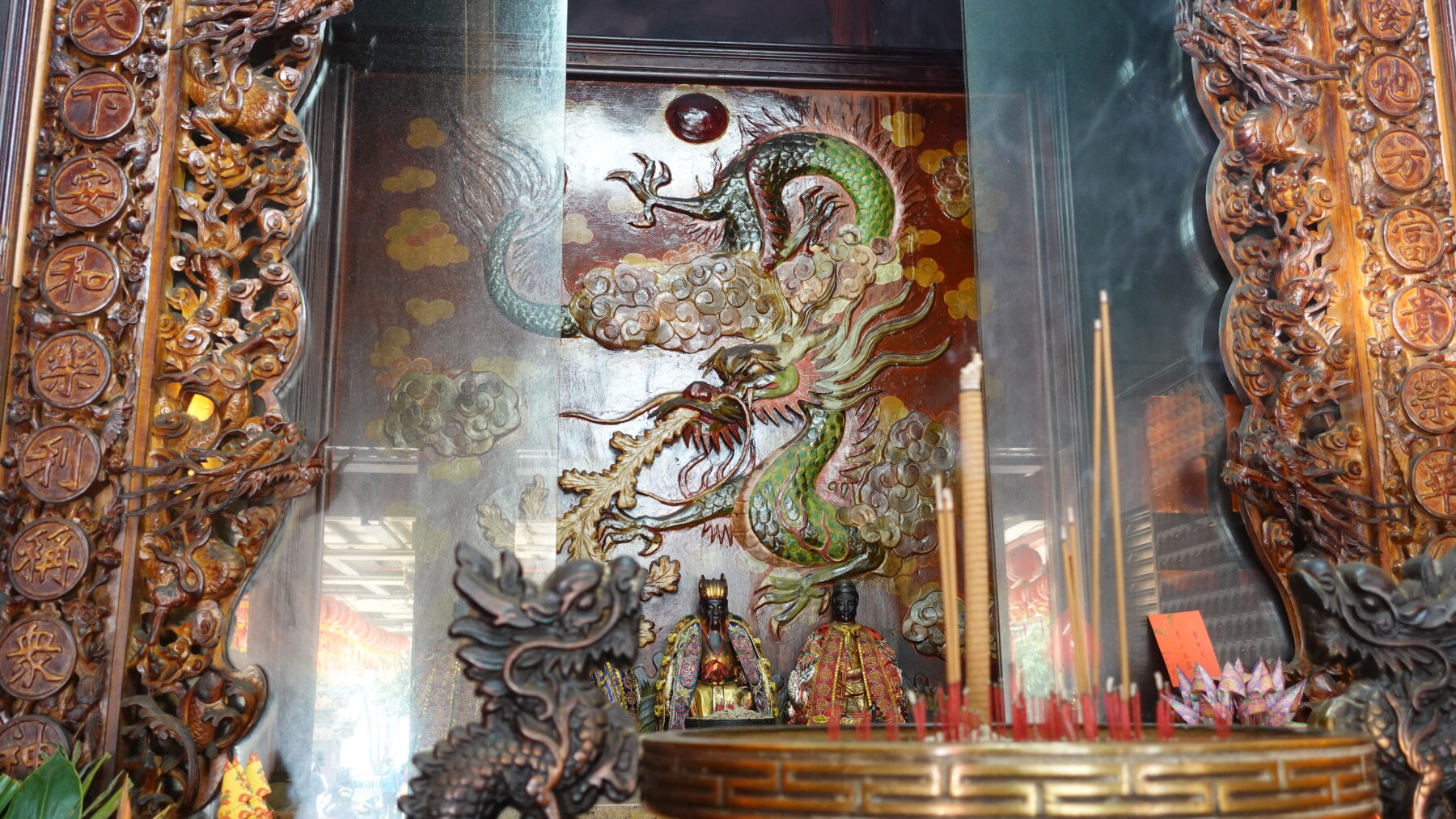 帶著孩子們穿過貓羅溪涵洞,總幹事吳麗芳指著堤岸旁的「寶南宮」說:「這裡就是我們的信仰中心。」廟裡供俸的土地公背後,是一幅「龍吐水」的浮雕。與一般龍吐珠不同,這裡的龍是吐水而非吐珠,寓意祈求水勢平順、不再淹水。孩子們靜靜聆聽,彷彿能從這座雕刻裡,看見家鄉曾有的掙扎與韌性。