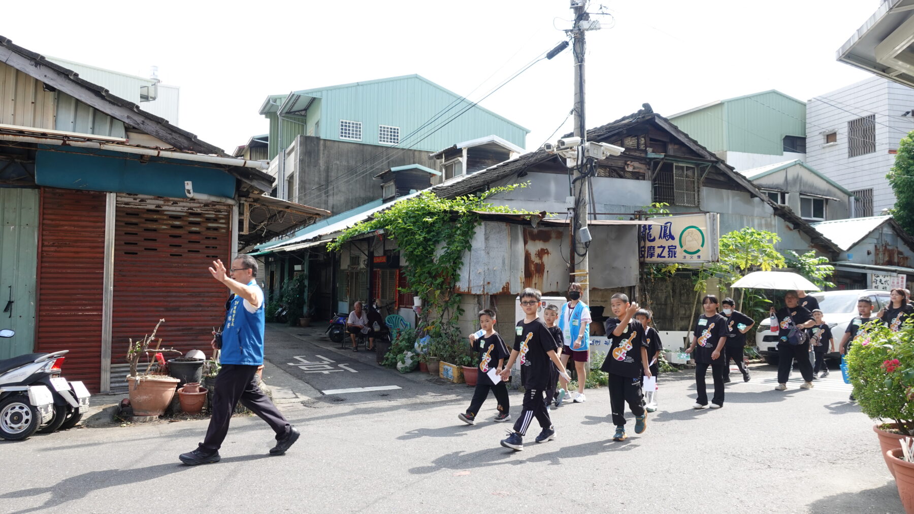 活動間隙,垂楊里志工帶著孩子們走訪鳳梨會社周邊,一邊聽故事、一邊實地導覽。老市場的磚牆、堯天宮的香火、巷弄裡的木電桿,全都成了最生動的教材。