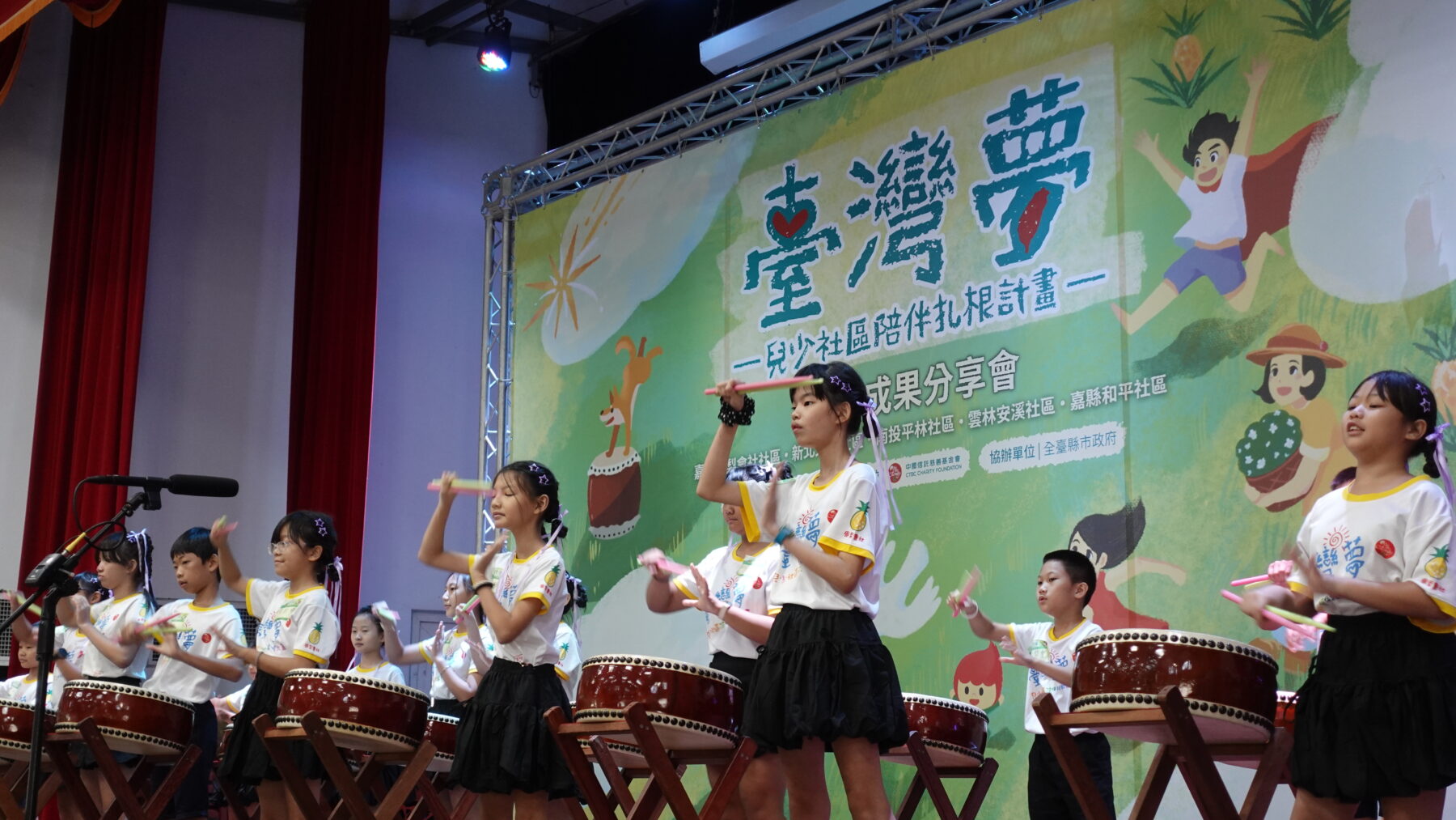 這次的成果發表會不只是展演,更像是一場跨社區的交流嘉年華。新北萬里北基社區的孩子帶來動感十足的舞蹈;嘉義大埔和平社區則以小提琴演奏展現恬靜與自信;南投草屯平林社區的孩子們隨著音樂律動;雲林虎尾安溪社區的孩子用玉米葉編成頭飾與胸針。葉小妹驕傲地帶著自己的作品介紹:「我們種的玉米吃完,葉子也能變成漂亮的飾品,這樣就不浪費!」