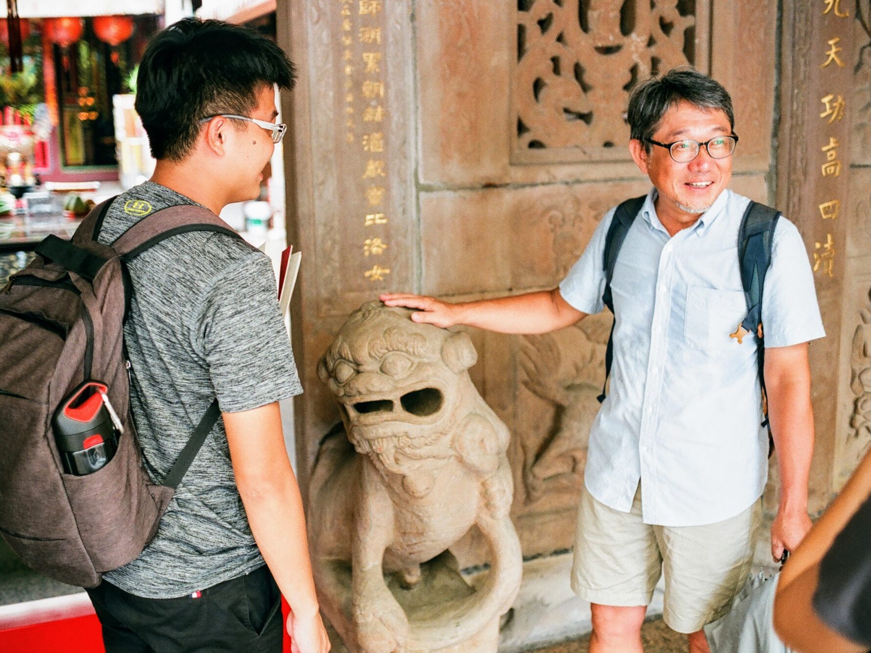 這次到訪頭城,是為了接下來的路線規劃與設計。以邊走邊吃為主題,搭配福哥的深度故事導覽。一路上我們品嚐了宜蘭特有的粳仔粿,並在頭城老街上唯一一家特色咖啡廳休憩,品茶、吃茶點,聽老闆說說他多年來在頭城挖掘出來的美景與特點。老街的舒適很適合漫步,咖啡廳更是讓人流連忘返。頭城老街南北都有一座土地公廟,剛好作為老街的頭跟尾,沿途會經過不少老建築,有頭城大家族留下的房屋、街屋,也有已經是現代化的建物住家。