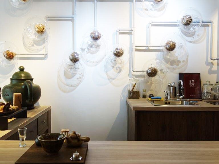 提供客人坐下來喝茶的手沖吧檯,加上有設計感的牆面,顛覆你對青草店的想像。