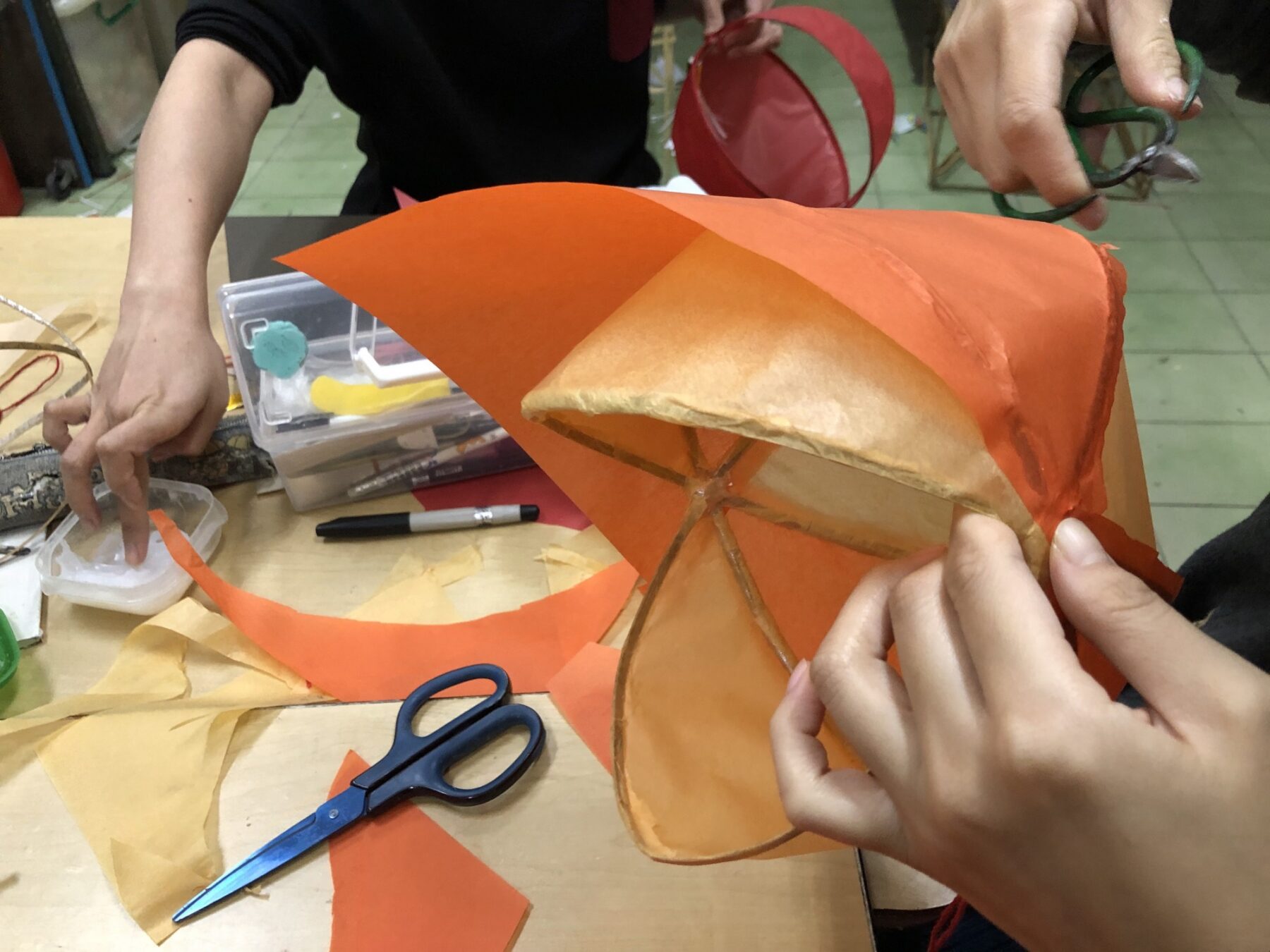 將紙用完美的曲線糊上骨架表面是個不簡單的任務,看起來可能理所當然,但會黏到鬥志大發,相信在工作坊裡你完全能體會這個心情。