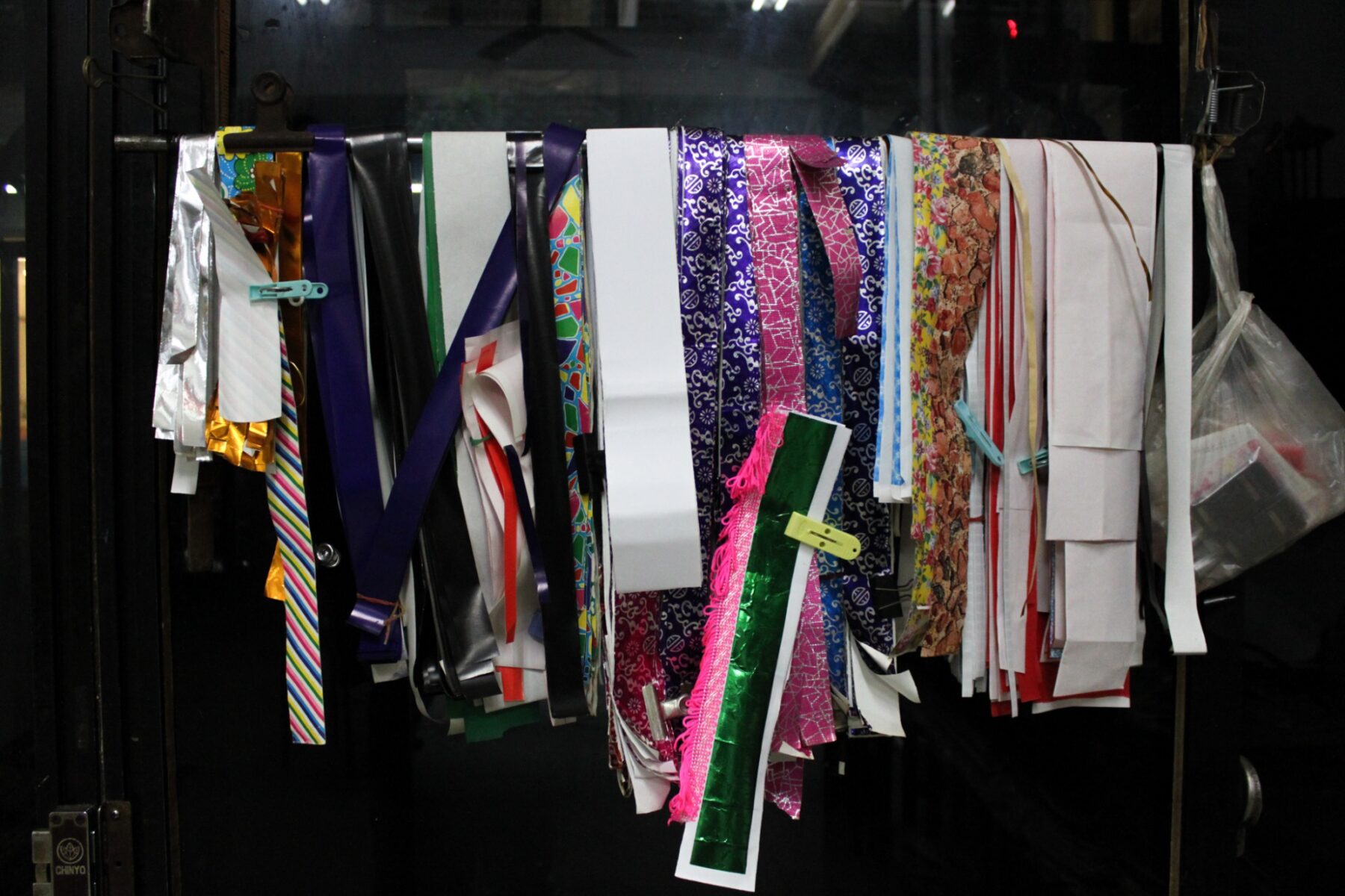 紙 ( x N百種 ) 、布、竹子、糨糊、白膠、鐮刀、繡剪、銃仔、柴刀 ( 剖竹子的一套器具 ) … 還有很多職人們也叫不出名字的器具。